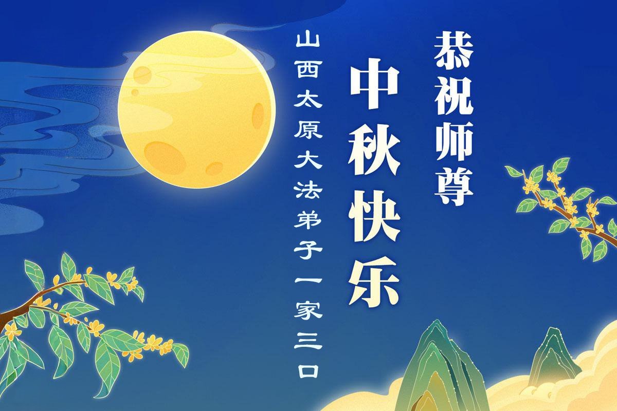 山西省太原市大法弟子一家三口恭祝慈悲偉大的師尊中秋節快樂!