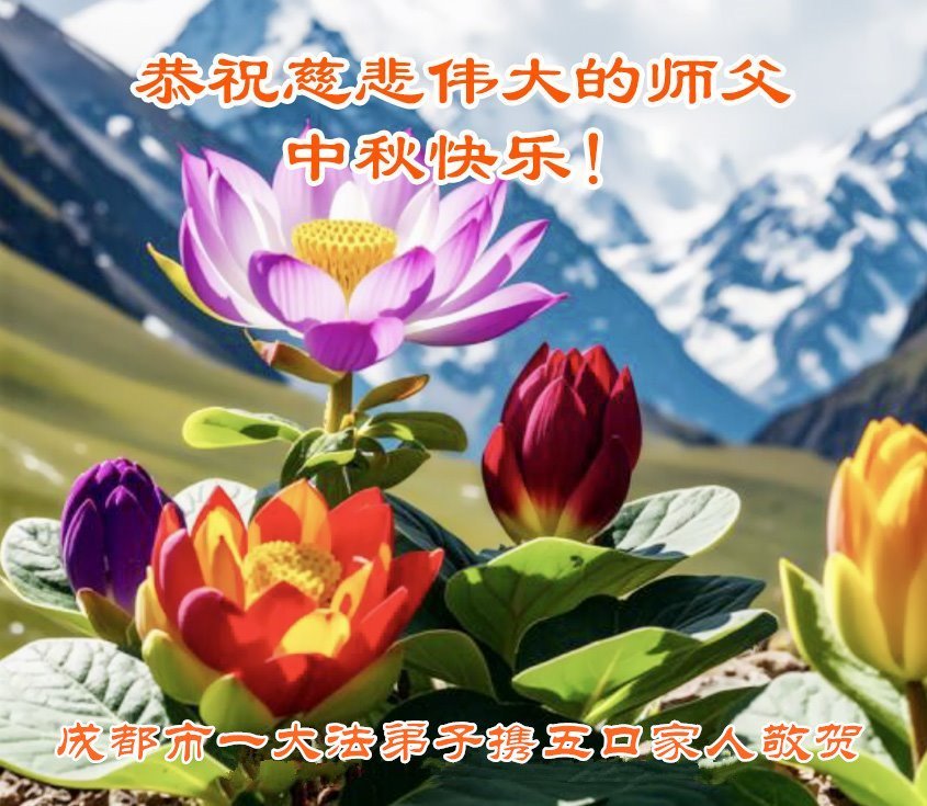 四川省成都市彭州市一大法弟子全家恭祝慈悲偉大的師尊中秋快樂!