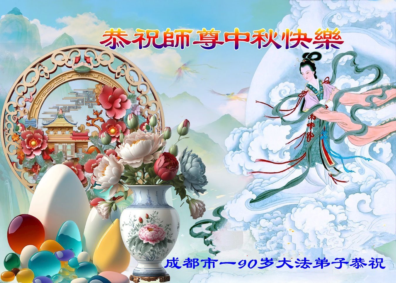 四川省成都市一九十歲大法弟子恭祝師尊中秋快樂!