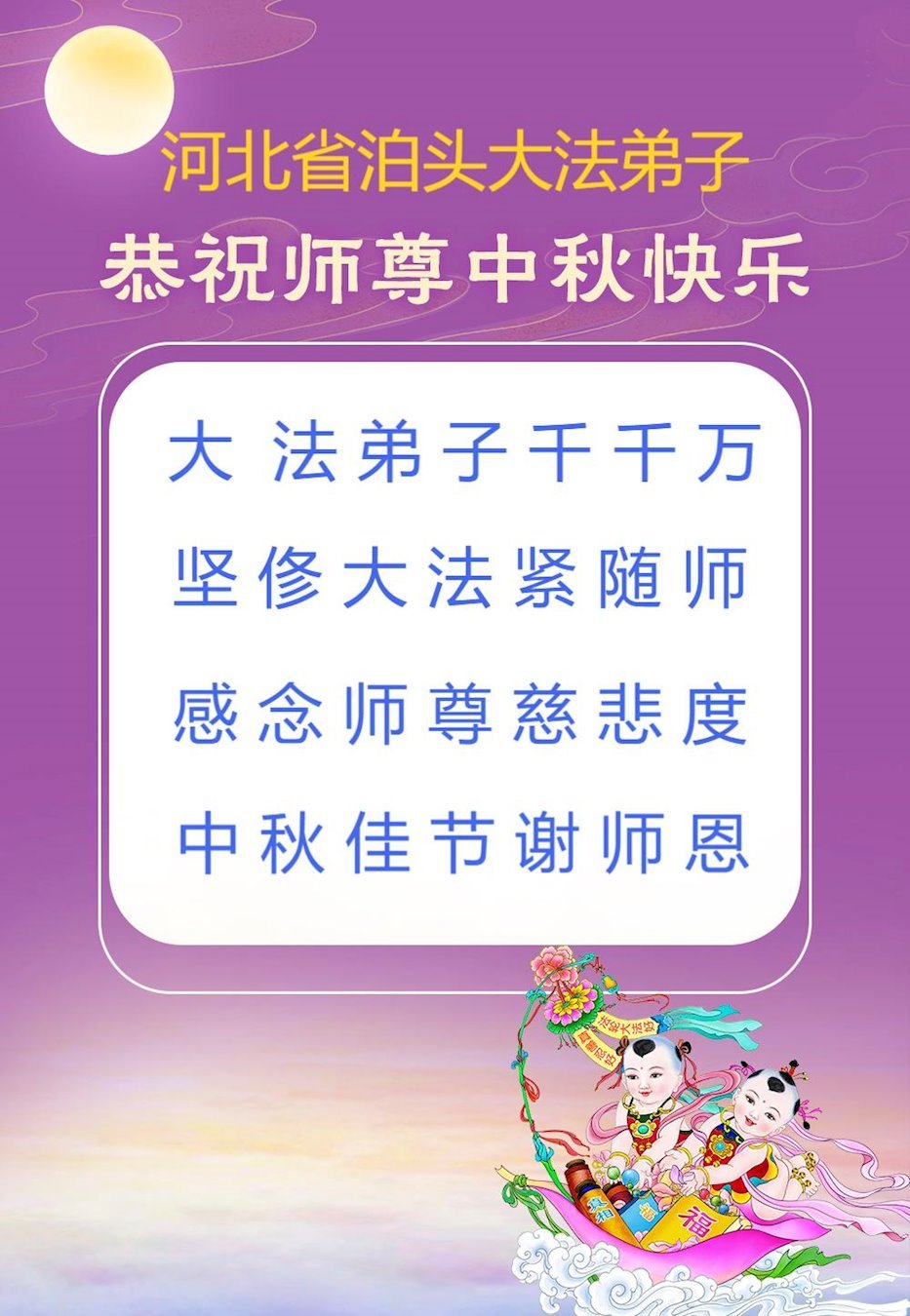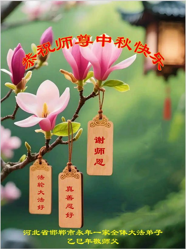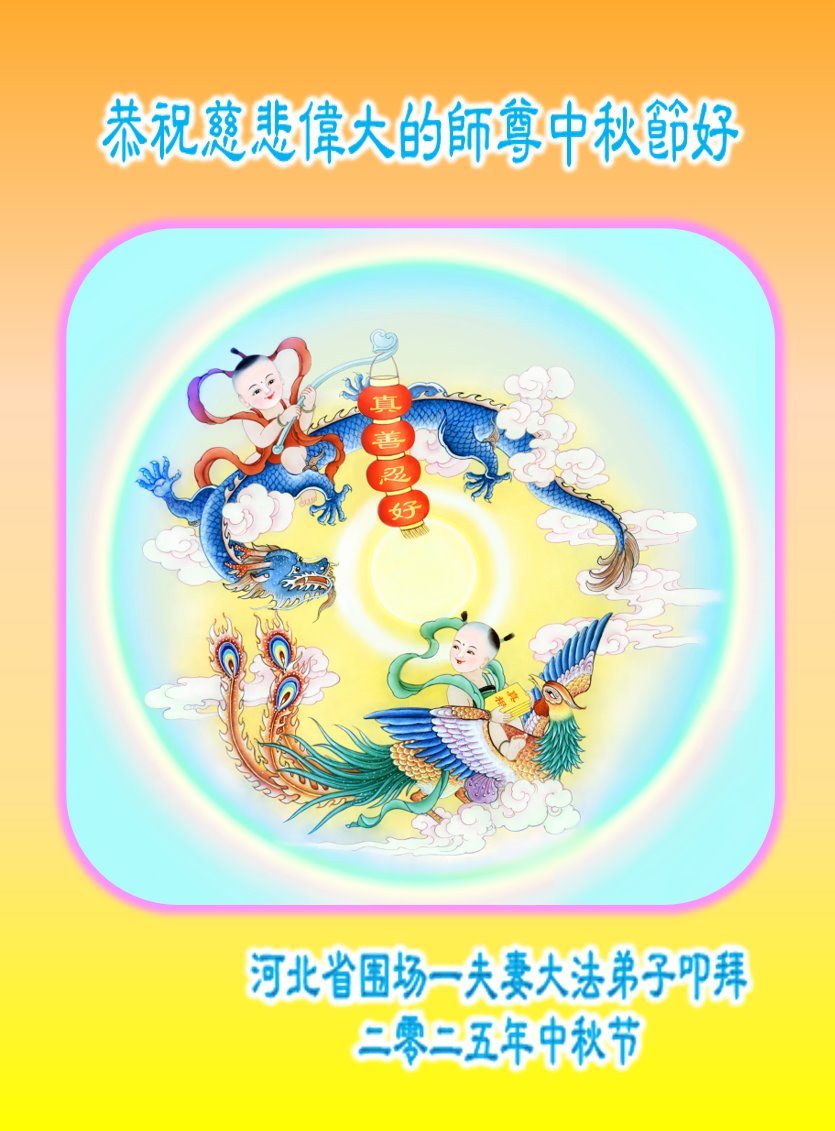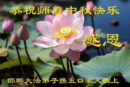 在中秋節到來之際,弟子向師尊道一聲:師尊您好!弟子想念您!弟子聽您的話,持之以恆的做好三件事,不鬆懈、不消沉,不掉以輕心。多學法、多救人,多發正念。讓師尊您少一份操勞,多一份欣慰。跟師尊回自己的真正的家。