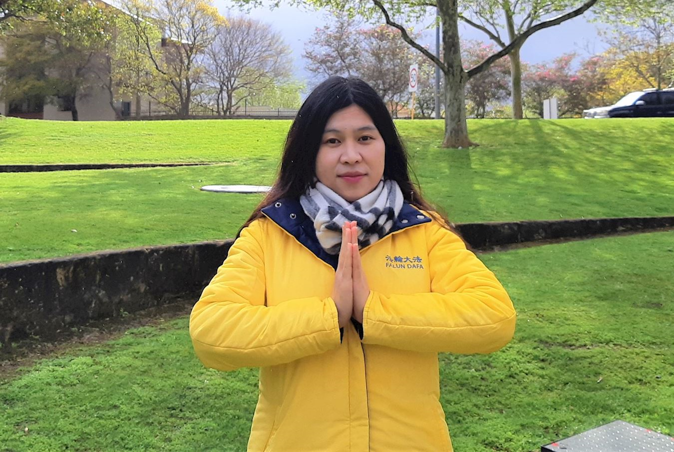 那時,她和先生在阿德萊德經營小餐廳和商鋪,日夜操勞,三十歲就患上腰間盤突出,早上起床需要家人幫助穿襪子,每天必須用頻譜儀照四十分鐘才能開始日常的生活。一九九九年六月的一天,一位親戚帶給她一本《轉法輪》,當天她就看了一晚上,白天守店時一有空就繼續看書,看得放不下。三天後家人提醒說這幾天沒有用頻譜儀,她這才發現,腰不疼了。她將師父的全部著作請回家,如飢似渴地閱讀,越讀心裏越敞亮。之後,先生、孩子也跟著一起煉功。