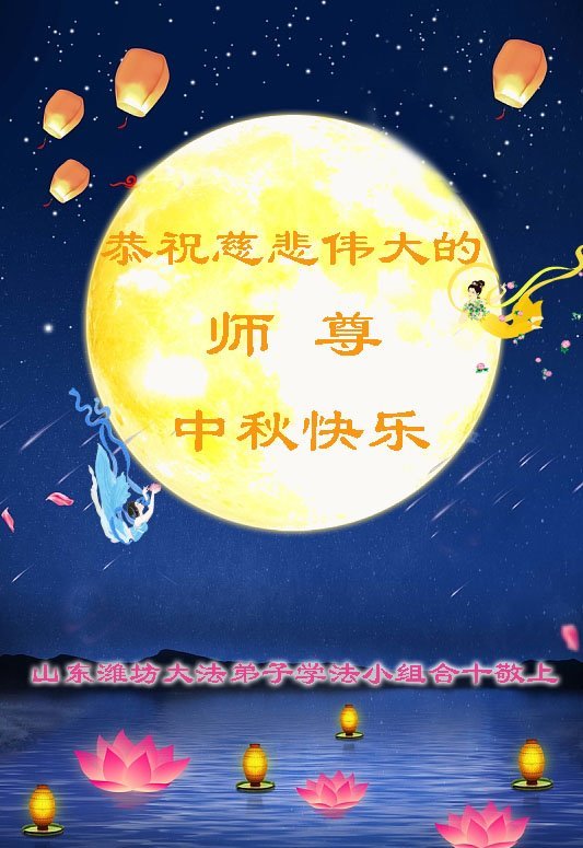 山東濰坊一學法小組大法弟子恭祝慈悲偉大的師尊中秋節快樂!