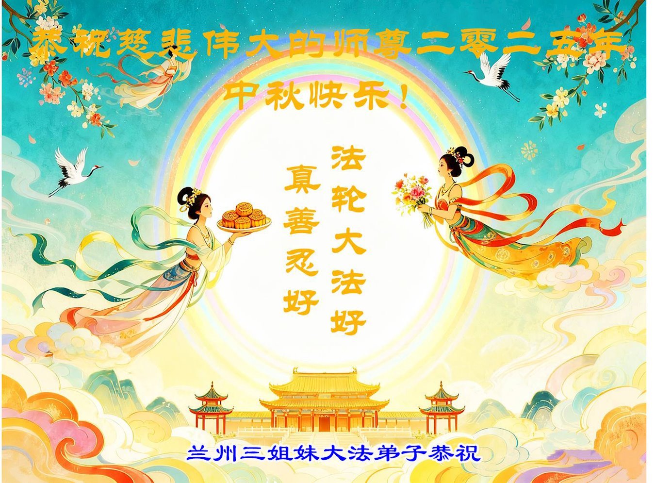 甘肅省蘭州市一大法弟子三姐妹恭祝師尊中秋快樂!