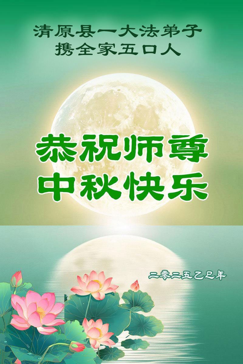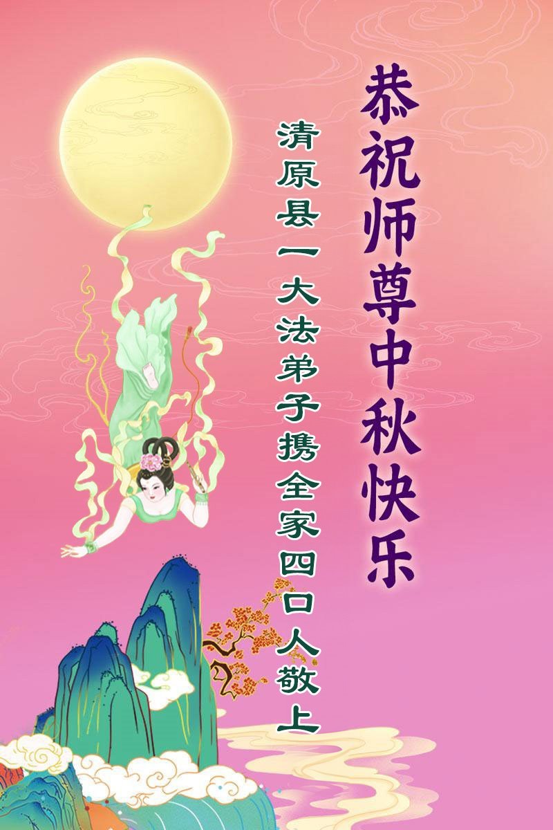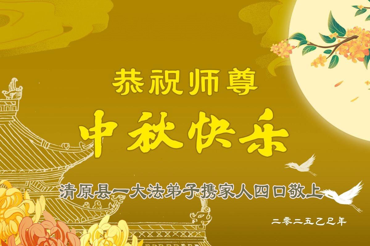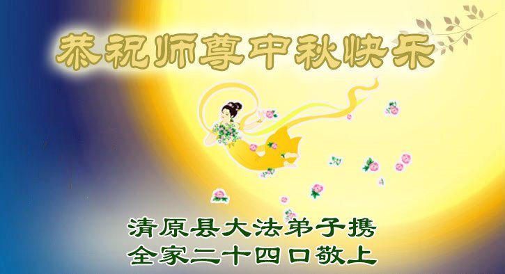 遼寧省撫順市清原縣一大法弟子攜全家恭祝師尊中秋節快樂!