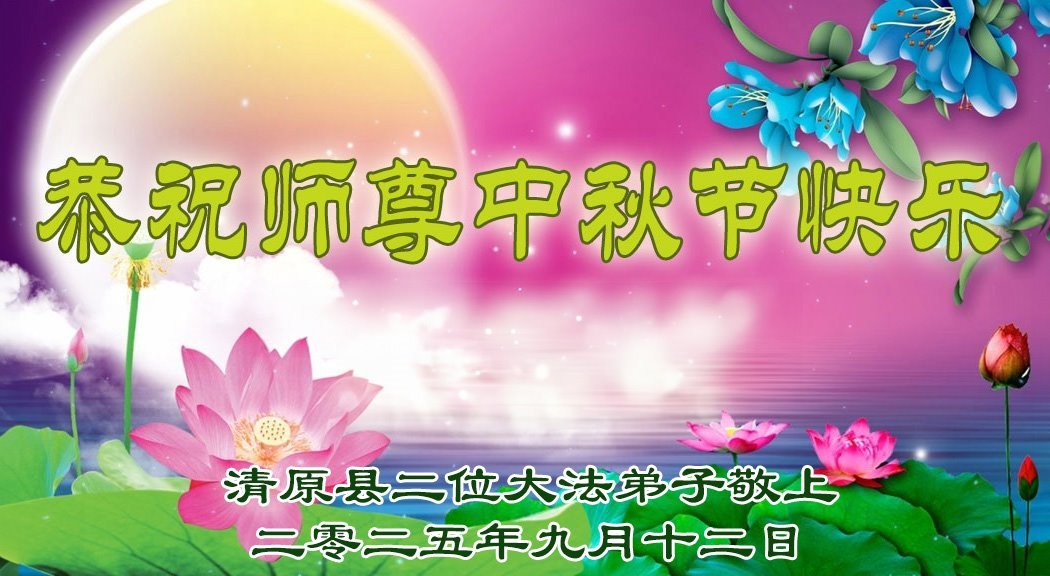 遼寧省撫順市清原縣二位大法弟子恭祝師尊中秋節快樂!