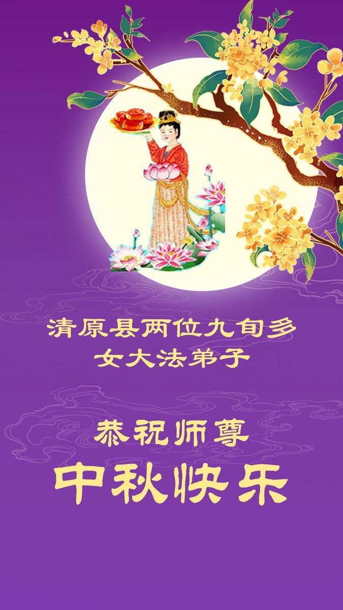遼寧省清原鎮西兩位大法弟子恭祝師尊中秋節快樂!