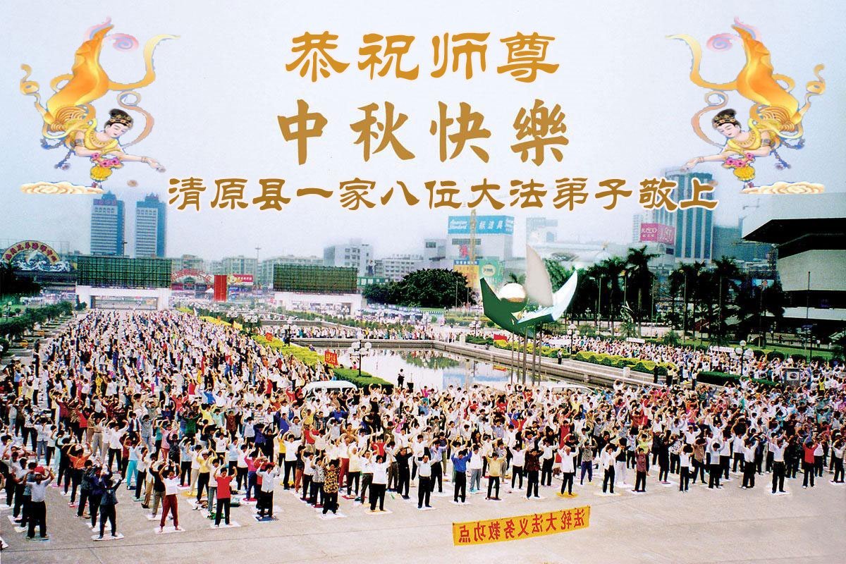 遼寧省撫順市清原縣一大法弟子攜全家十七口恭祝師尊中秋節快樂!