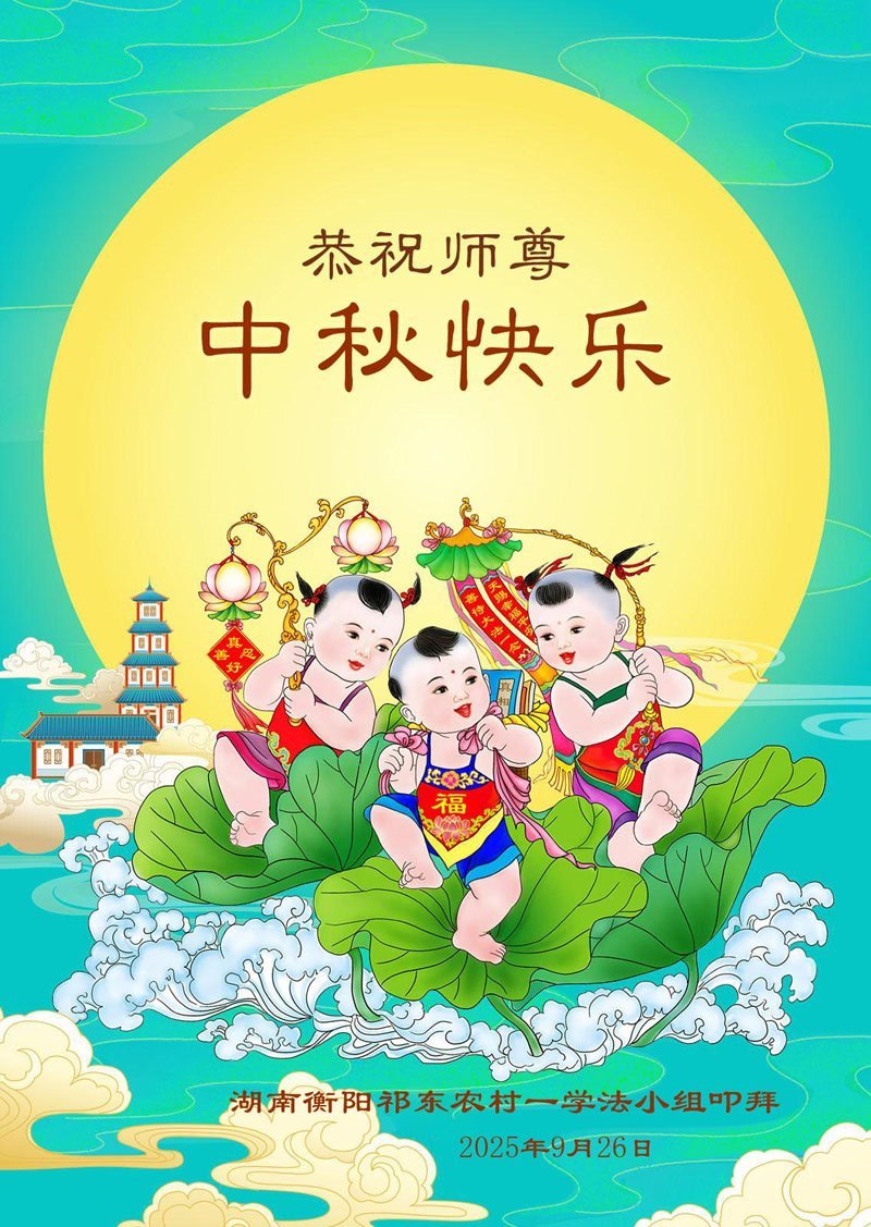 湖南衡陽縣農村一學法小組大法弟子恭祝慈悲偉大的師尊中秋快樂!