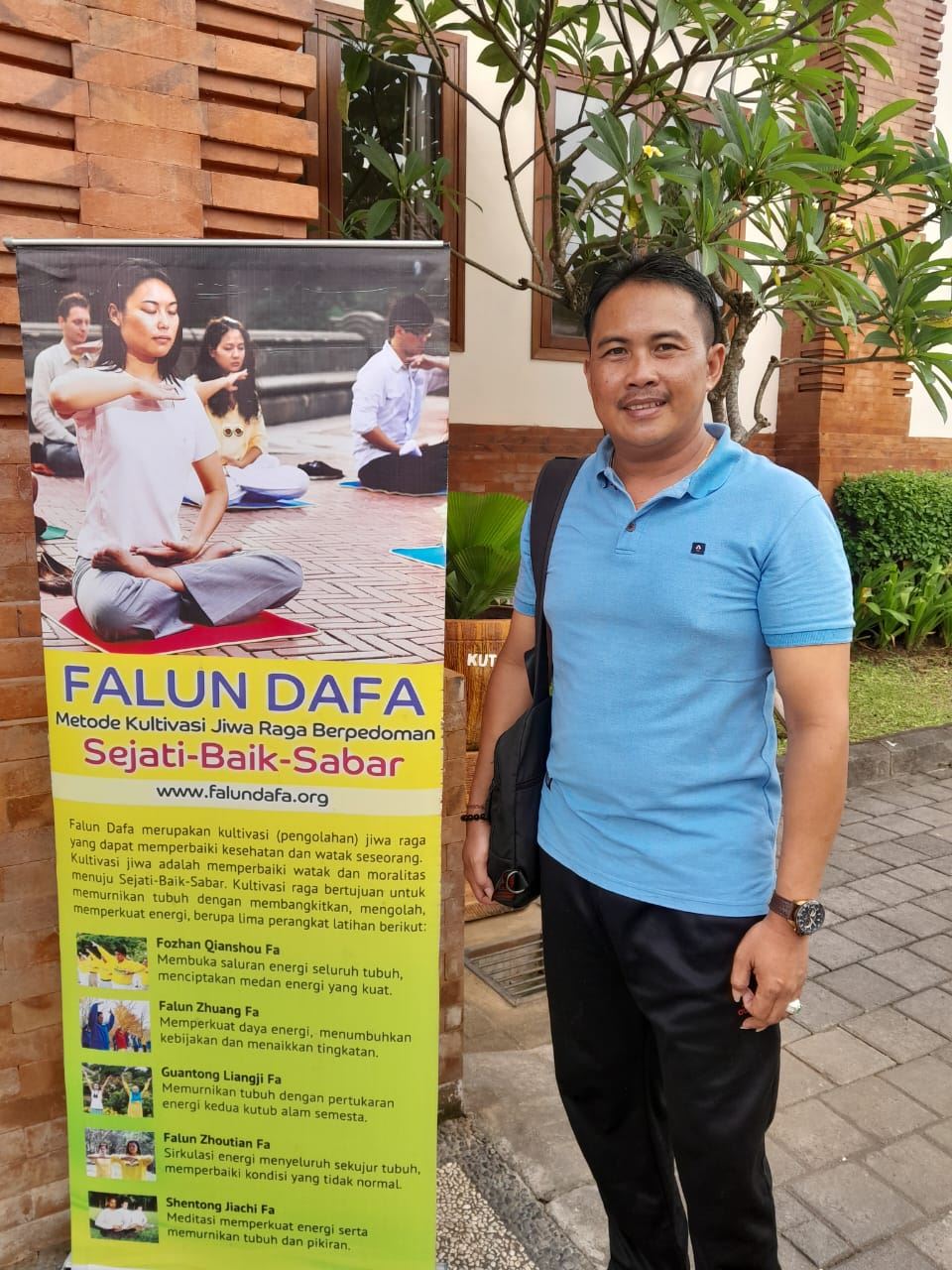 北庫塔區政府事務代理負責人蓋德﹒巴尤﹒普拉瑪納(Gede Bayu Pramana) 在此次活動中第一次學煉法輪大法的五套功法。他說:「雖然今天是我第一次煉法輪功,但我已經感覺到自身的變化。我感到更加平靜。昨天我還覺得頭暈,但今天煉功後感覺好多了。」