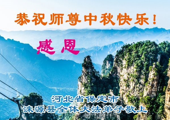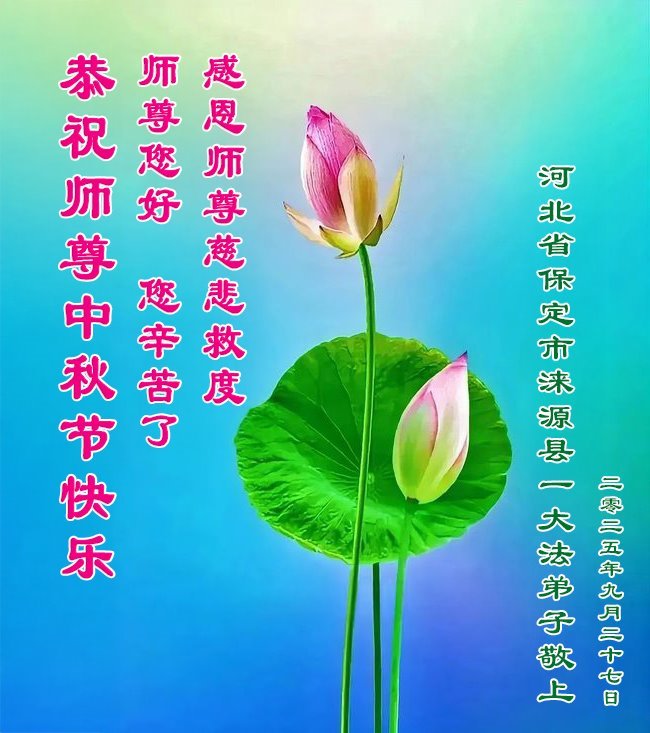 我們是河北蠡縣一學法小組的大法弟子,在中秋節到來之際,我們懷著無比感恩的心,向偉大的師尊叩拜,祝師父中秋節快樂!我們謹遵師父的教導,多學法、學好法,實修自己,做好三件事。做師父的真修弟子。
