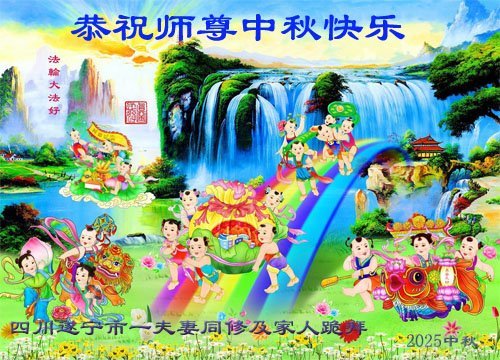 四川省遂寧市一夫妻大法弟子及家人恭祝師父中秋節快樂!