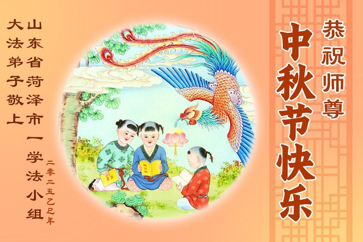 山東省菏澤市一學法小組大法弟子恭祝慈悲偉大的師尊中秋節快樂!