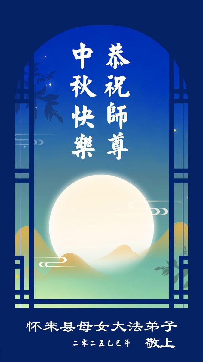 河北張家口蔚縣城一大法弟子恭祝師尊中秋節快樂!謝謝師父的慈悲苦度!