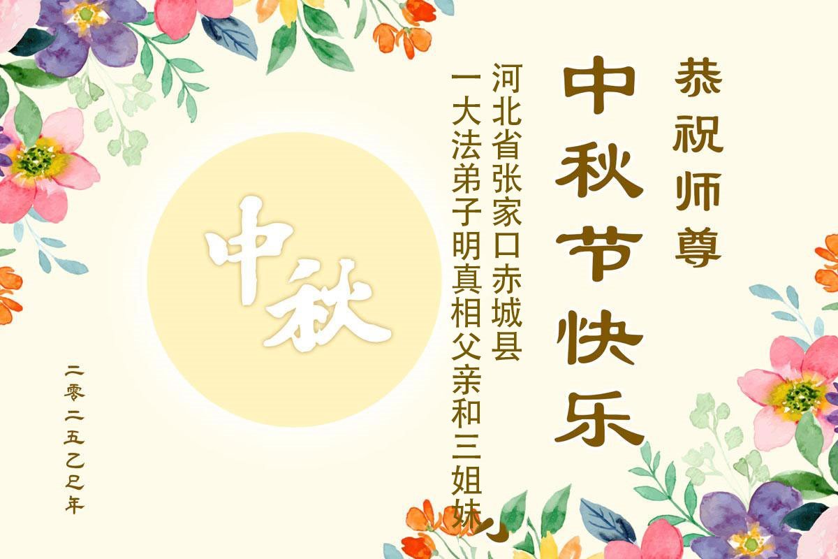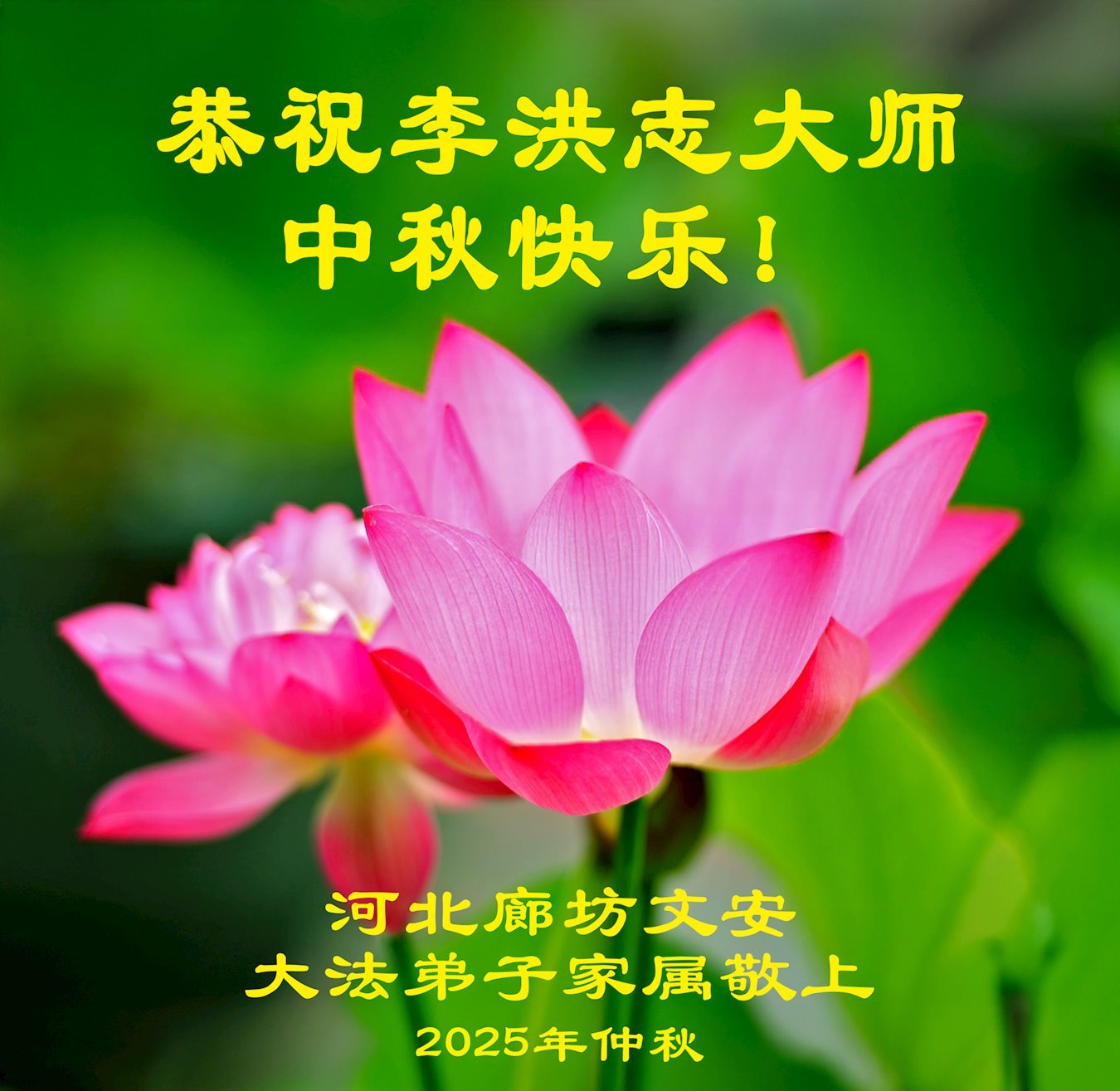 河北省廊坊市文安縣一大法弟子明真相的家屬恭祝李洪志大師中秋快樂!