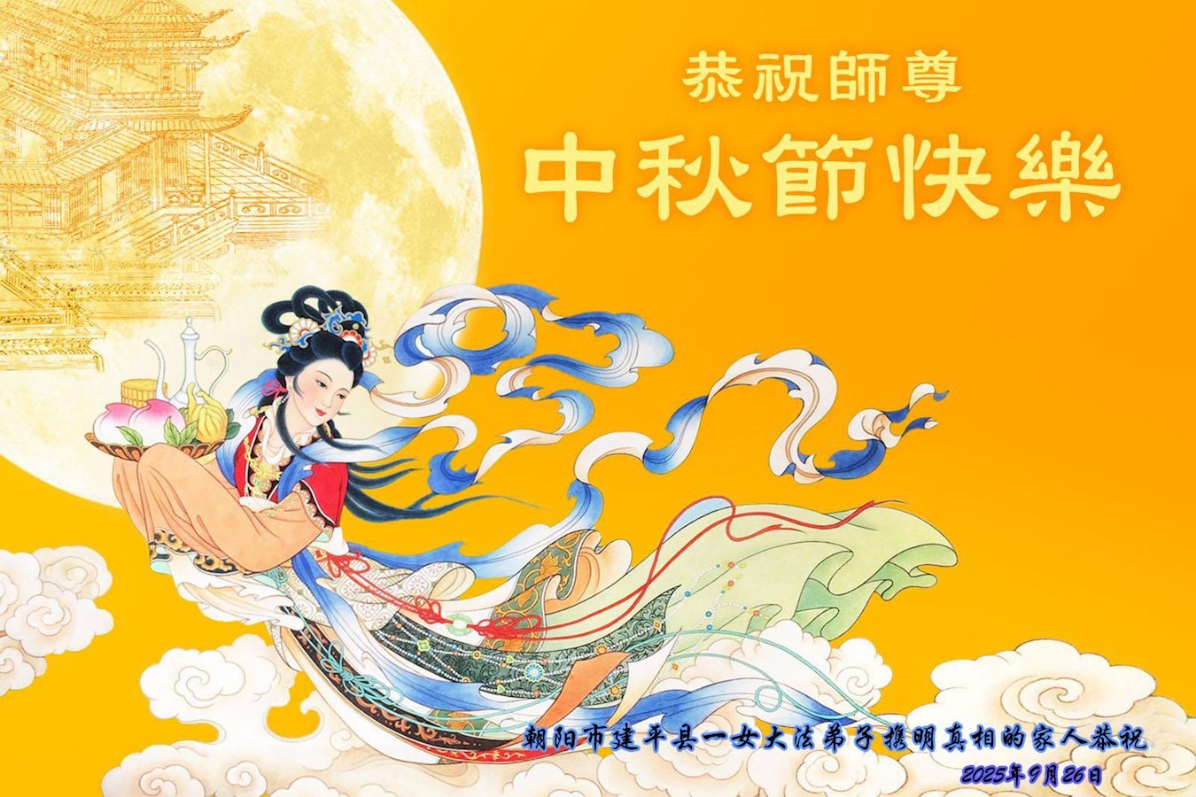 遼寧省朝陽市建平縣一女大法弟子攜明真相的家人恭祝慈悲偉大的師尊中秋節快樂!