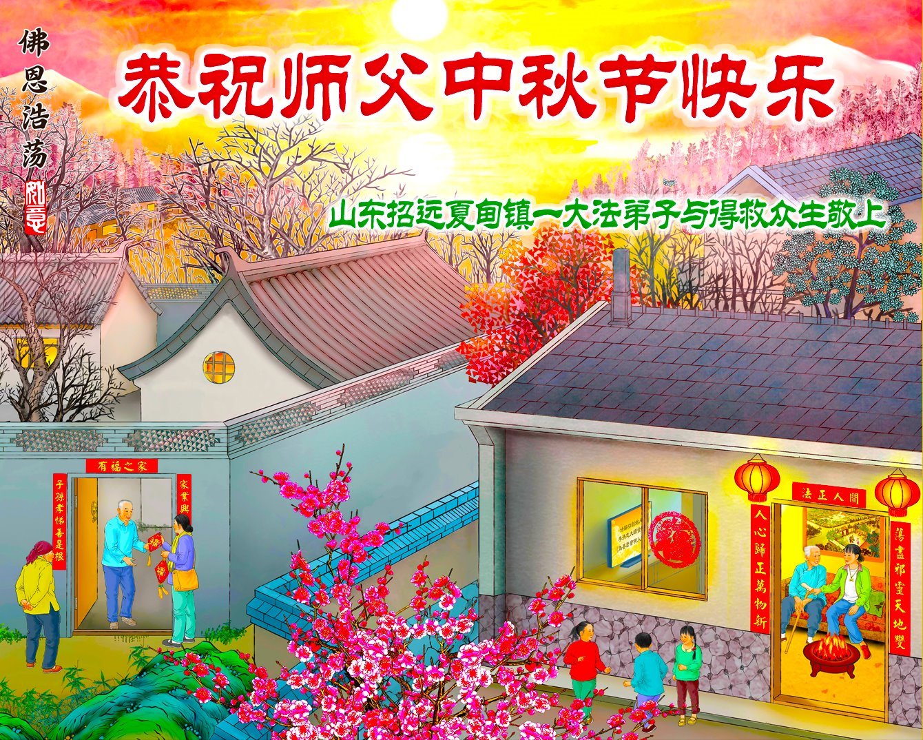 山東省煙台市招遠市夏甸鎮一大法弟子與明真相的眾生恭祝慈悲偉大的師父中秋節快樂!