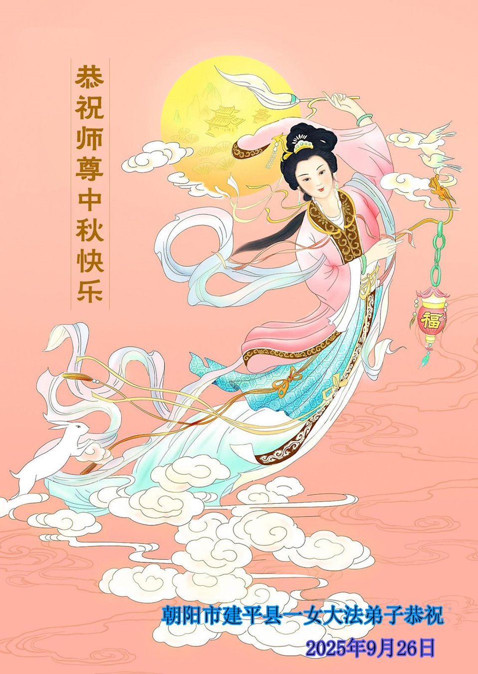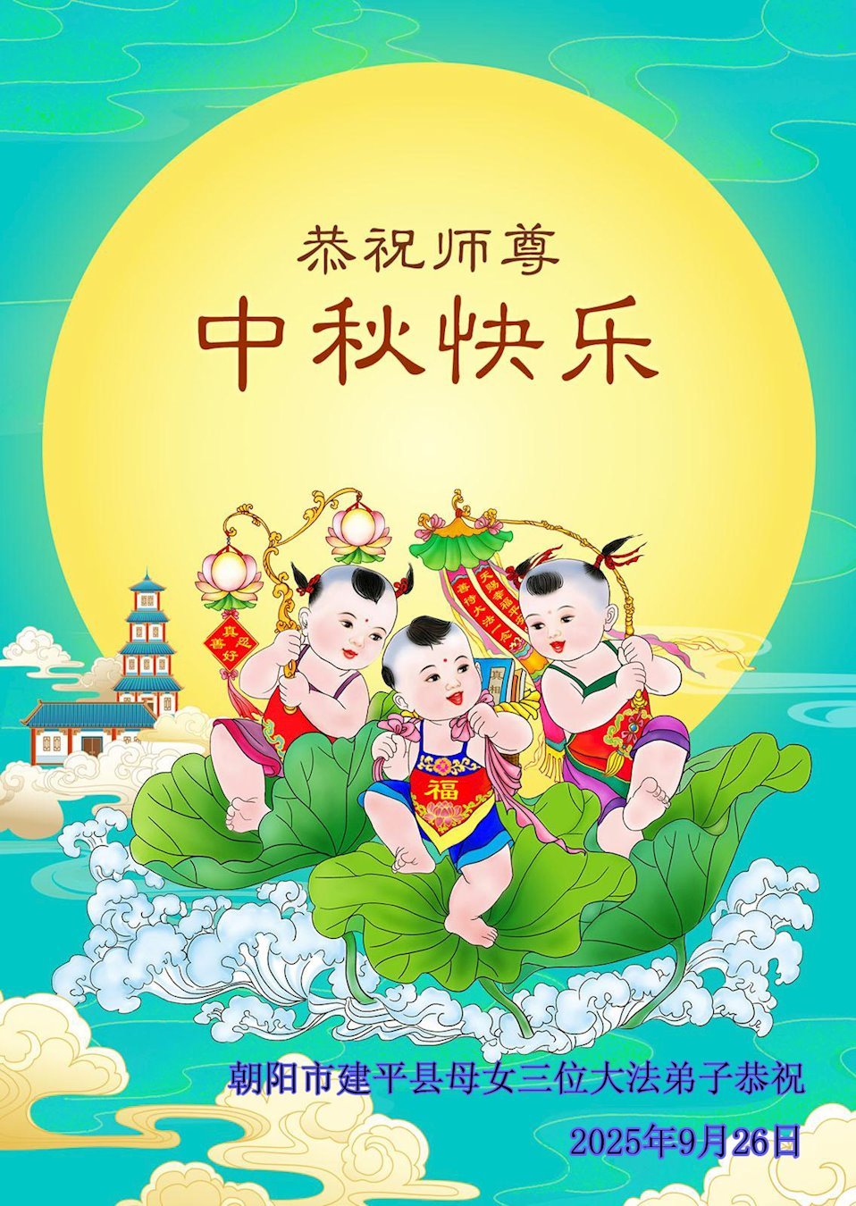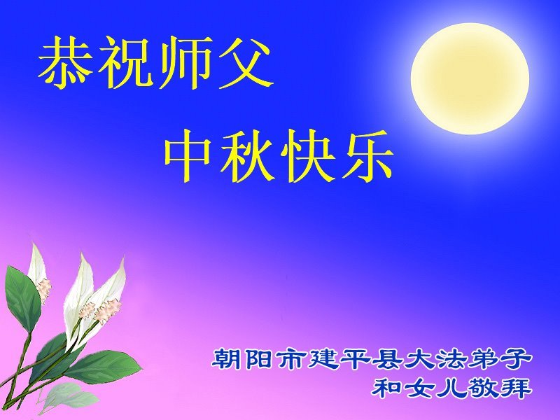 家人和女兒女婿支持大法,常念法輪大法好,真善忍好。恭祝師父中秋節快樂!