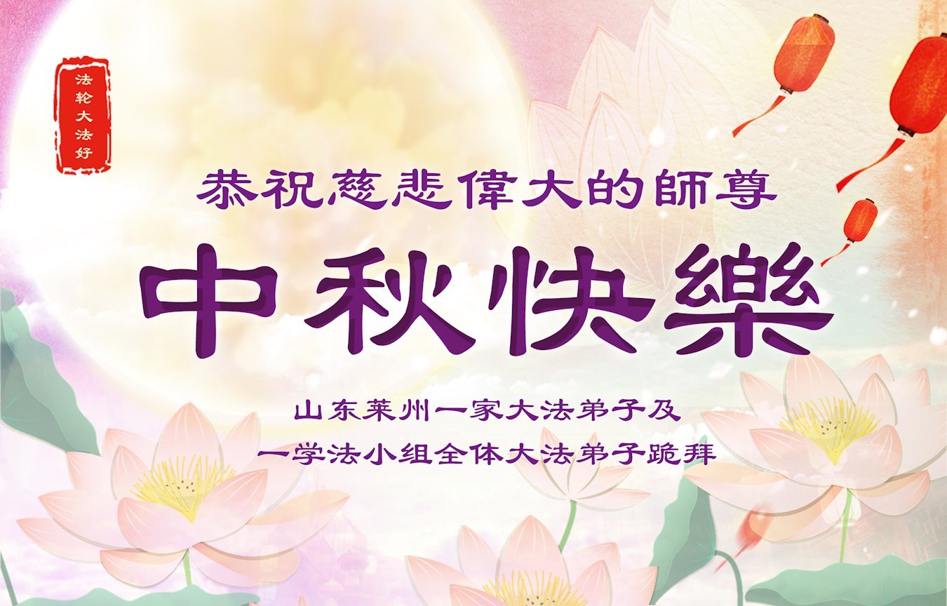山東省萊州市一學法小組全體大法弟子及一家大法弟子恭祝慈悲偉大的師父中秋節快樂!