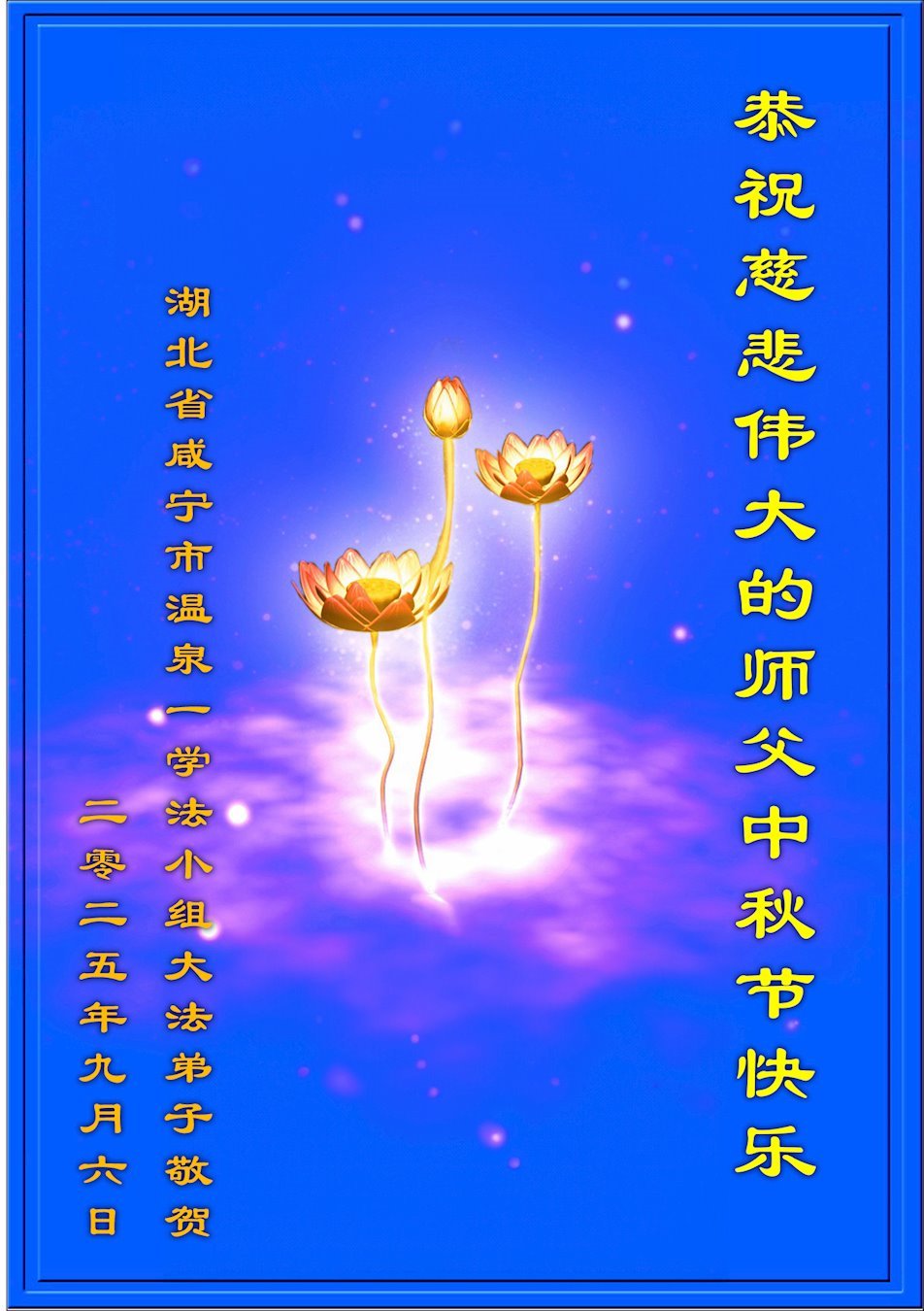 湖北省咸寧市溫泉一學法小組大法弟子恭祝慈悲偉大的師父中秋節快樂!