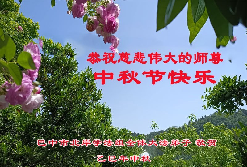 四川省巴中市北岸學法小組大法弟子恭賀慈悲偉大的師尊中秋快樂!