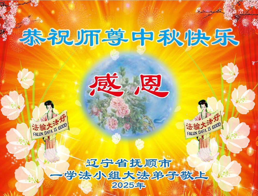 遼寧省撫順市一學法小組大法弟子恭祝師尊中秋節快樂!