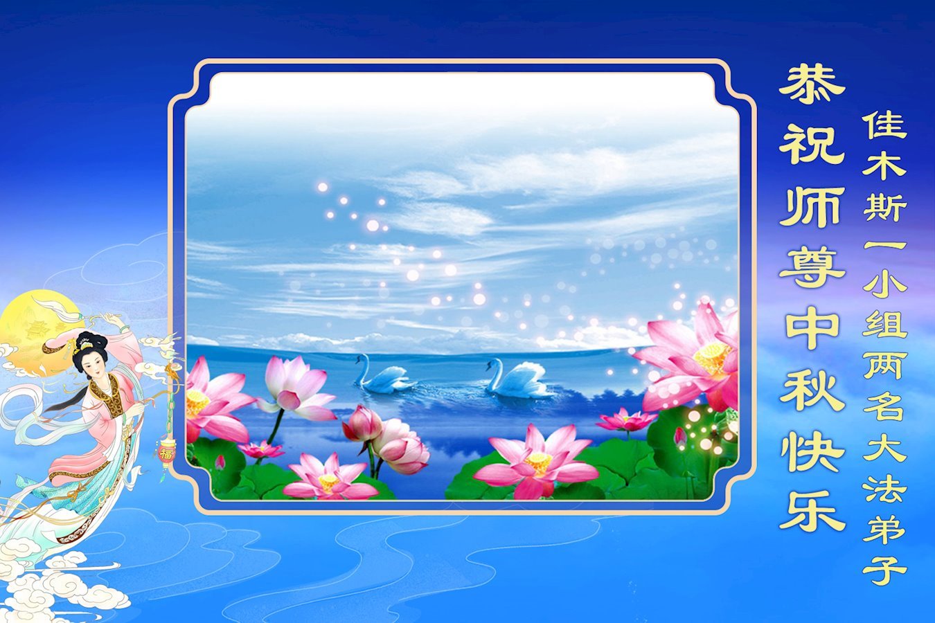 二零二五年中秋節將至,在這不平凡的一年中,師尊為弟子、為眾生承受了太多太多!在此我們學法小組大法弟子及家人與被救度的世人,向師尊問好,恭祝師尊中秋快樂!感恩師尊洪恩浩蕩!永世銘記大法救度之恩!我們要走好最後的路,等待與師尊,與我們真正的家人團聚!