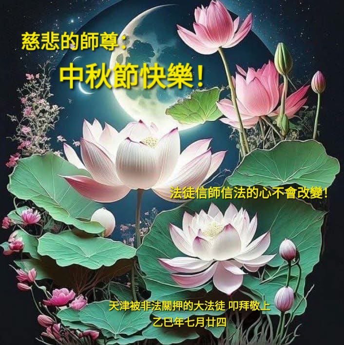 大陸被非法關押的大法弟子恭祝師尊中秋快樂!