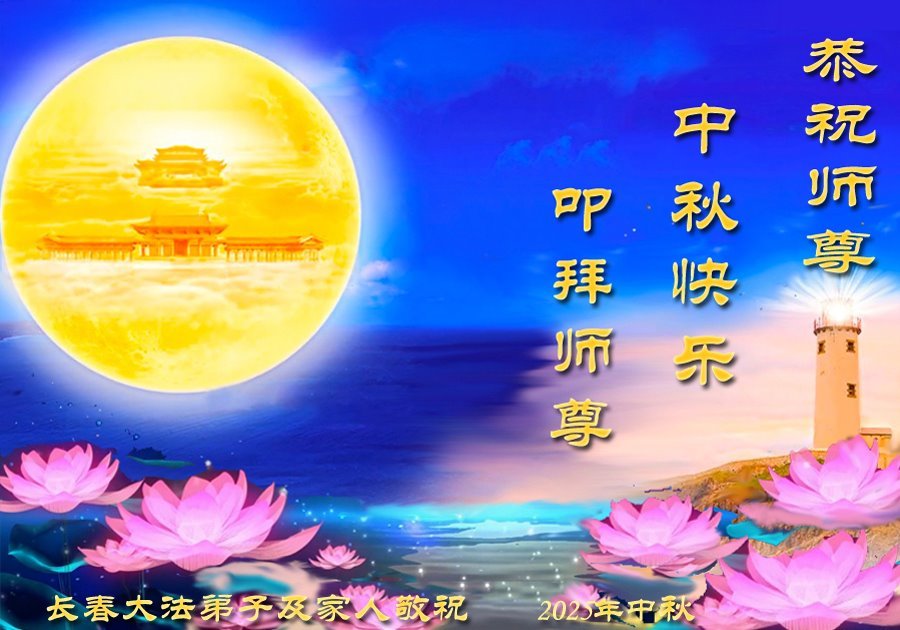 恭祝慈悲偉大的師尊中秋節快樂!全家都受益於法輪大法的恩賜,師恩如山,無以言表,在這中秋佳節,全家衷心的感恩師尊,感謝慈悲偉大的師尊救度之恩!