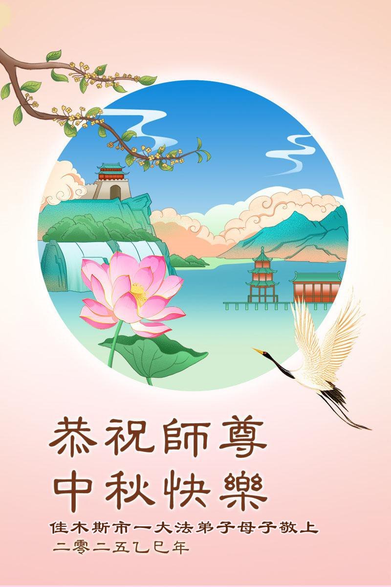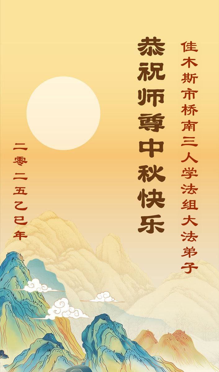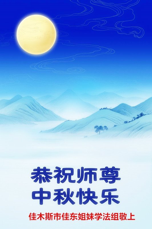 師父您好,師父您辛苦了!每逢佳節倍思親,弟子想念您。弟子會在這稍縱即逝的有限時間裏,勇猛精進,努力做好三件事,多救人,迎接法正人間的到來,隨師返家園。