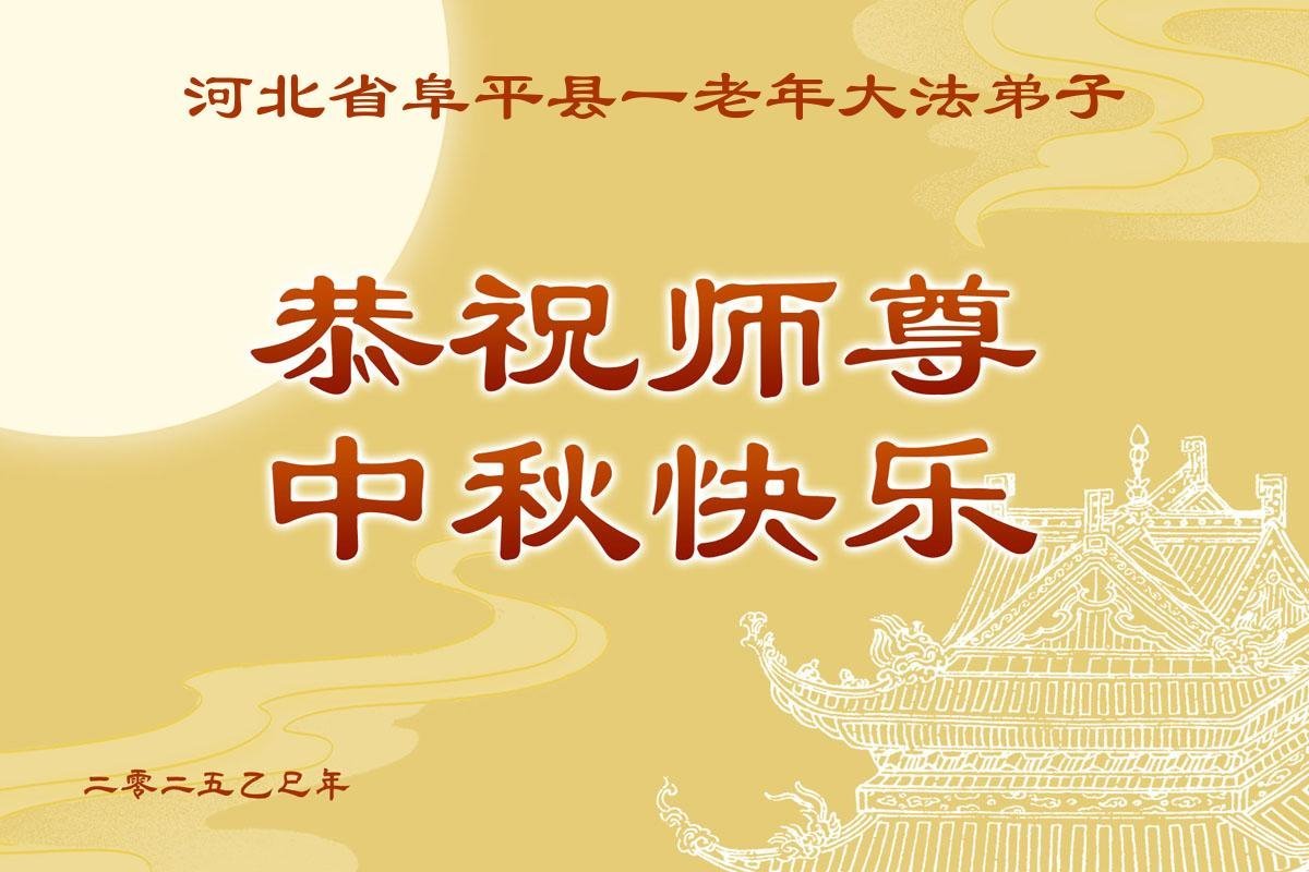 師父您好!祝您中秋節快樂!每逢佳節倍思親,遙望萬里淚濕襟,大法引我永向前,跌倒爬起向前追!做好三件事,隨師把家還!