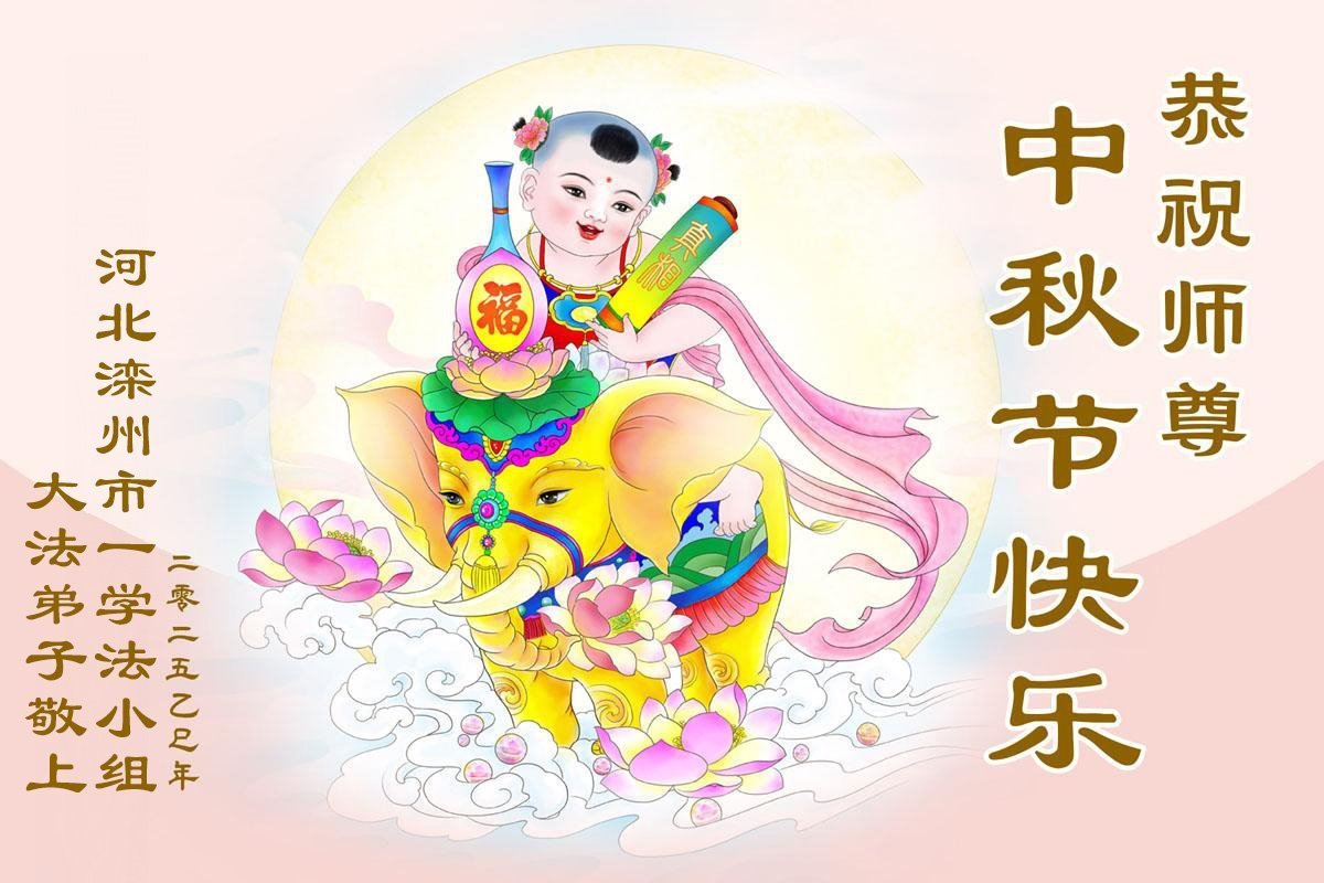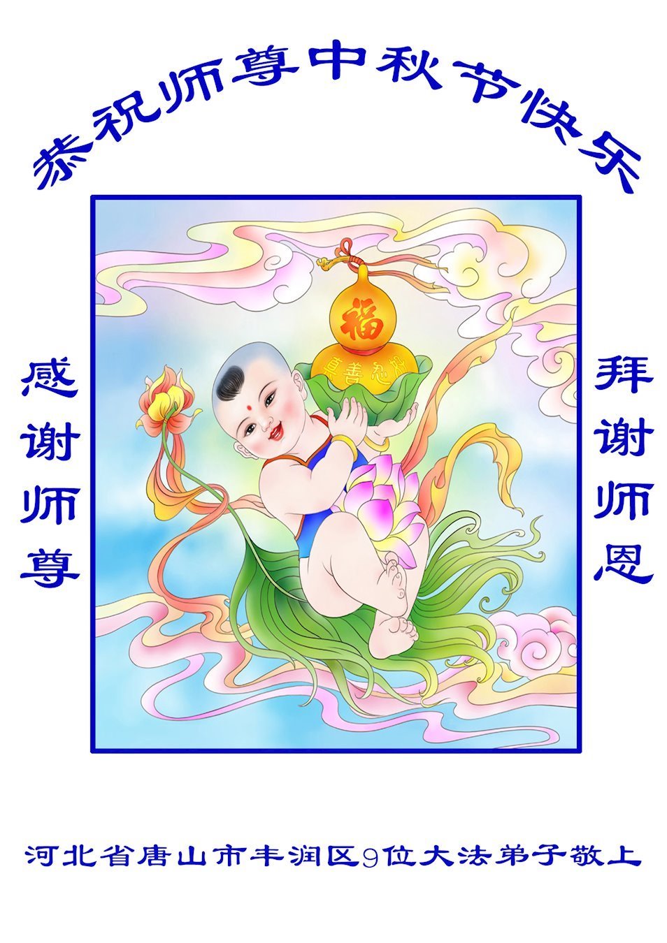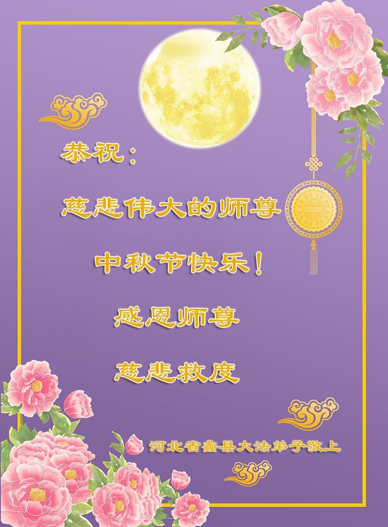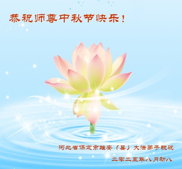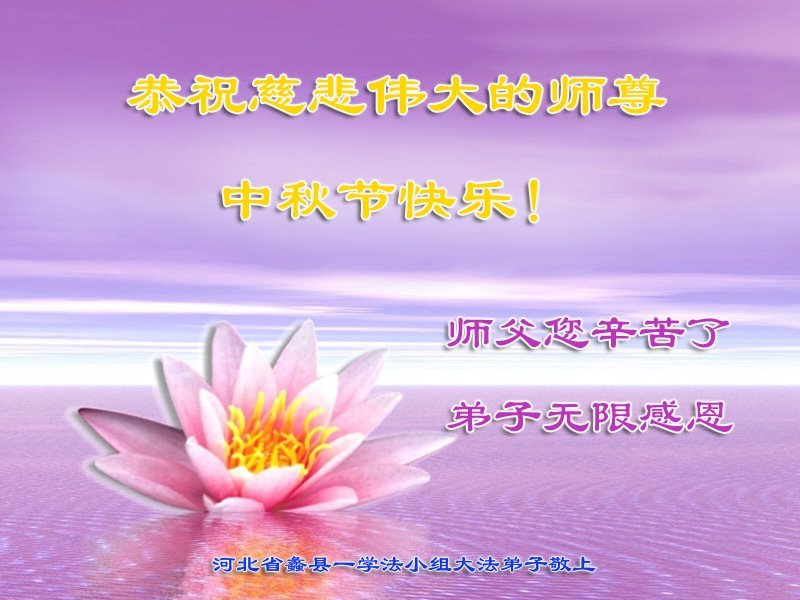 尊敬的師父好!時間如梭,轉瞬又到了中秋佳節,在中秋佳節即將到來之際,我們大陸學法小組三大法弟子遙祝師尊中秋節快樂!師父,您辛苦了,感謝師父您的慈悲保護!您的付出弟子無以言表。我們絕不辜負您的殷切期望,我們會腳踏實地的做好三件事,助師正法,救度眾生,兌現史前大願,返本歸真,圓滿隨師還!