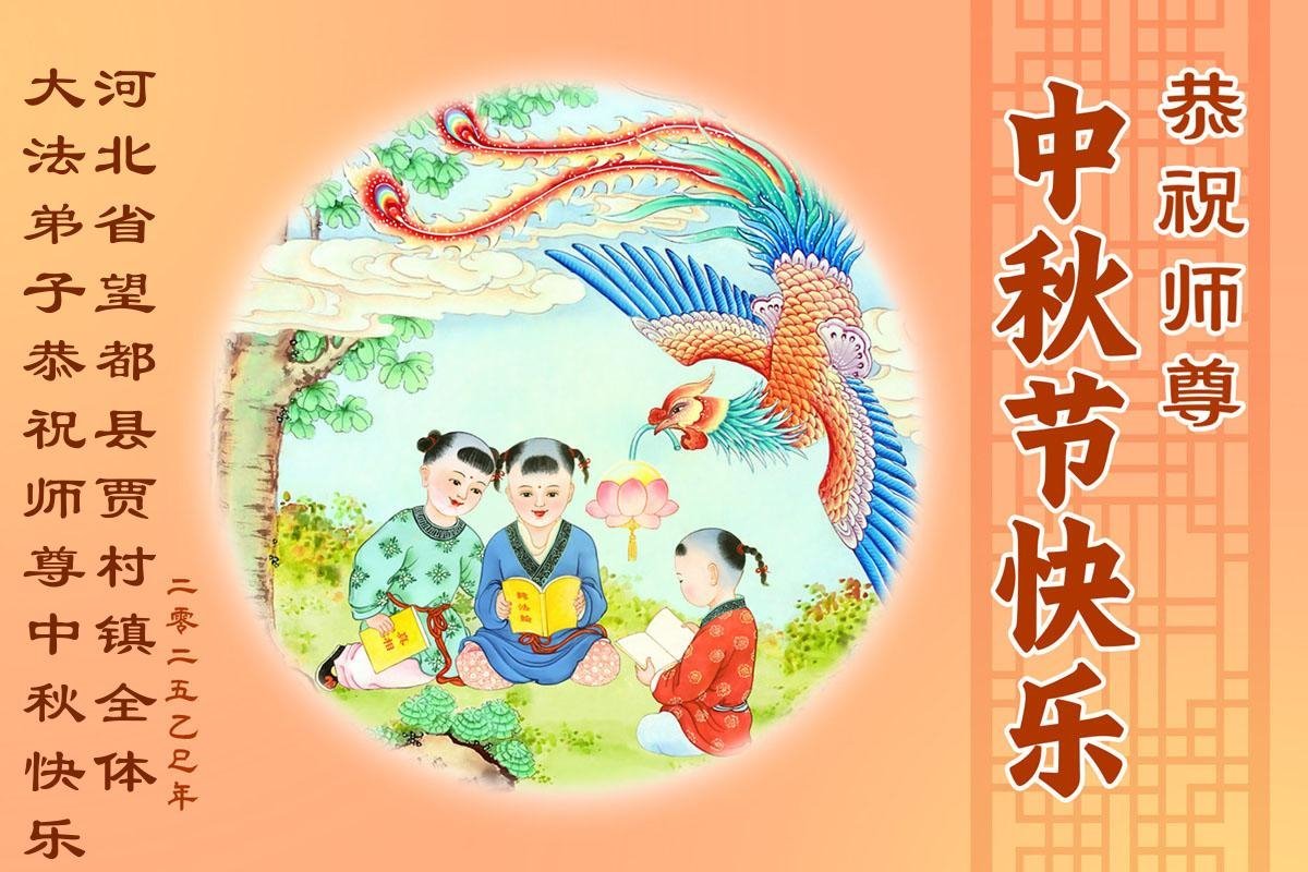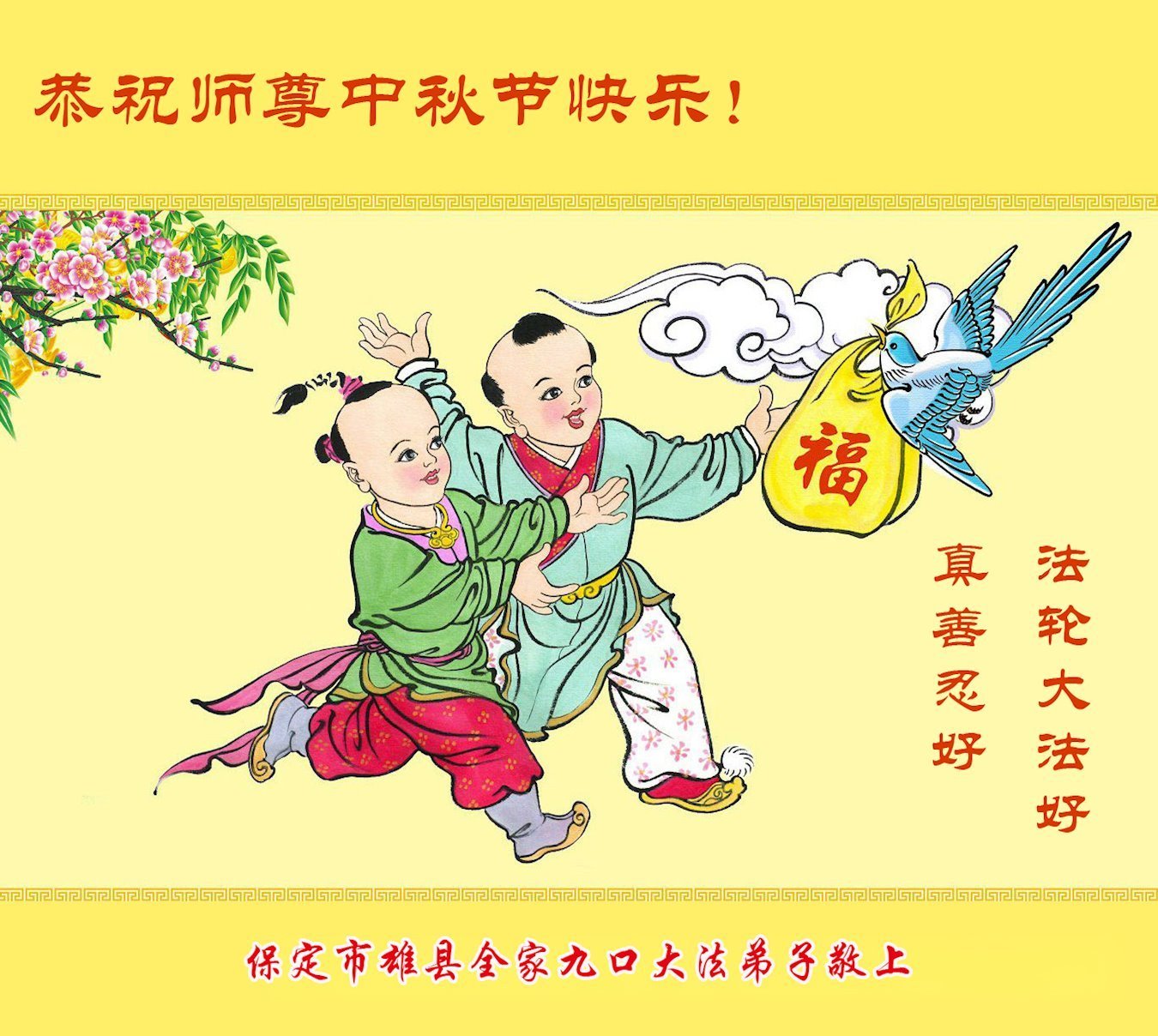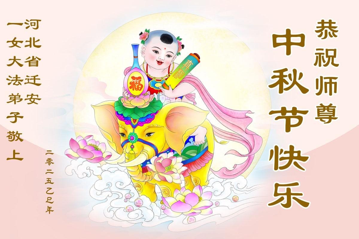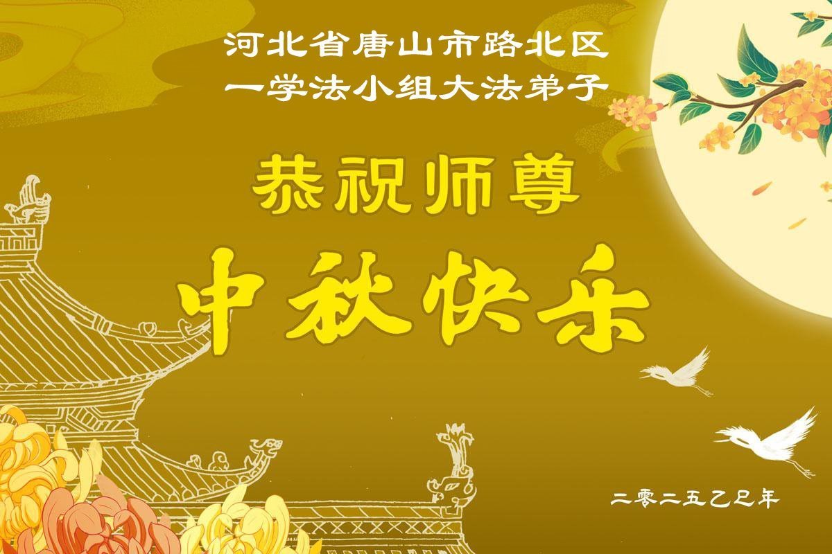 尊敬的師父好!時間如梭,轉瞬又到了中秋佳節,在中秋佳節即將到來之際,我們大陸學法小組三大法弟子遙祝師尊中秋節快樂!師父,您辛苦了,感謝師父您的慈悲保護!您的付出弟子無以言表。我們絕不辜負您的殷切期望,我們會腳踏實地的做好三件事,助師正法,救度眾生,兌現史前大願,返本歸真,圓滿隨師還!
