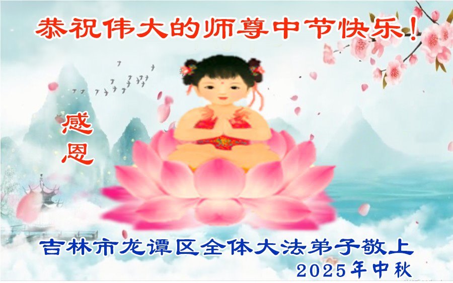 我是吉林市大法弟子,修煉二十九年了。經歷了風風雨雨,家人也跟著承受了很多。我們都知道是師尊給予了我們全家最美好的一切:身體的健康、家庭的和睦、對老人盡孝、為子女盡心!如果沒有大法,家庭可能早就分崩離析了。因為修煉,家庭變的凝聚力強、充滿溫情!我們全家感恩師尊,恭祝師尊中秋快樂!