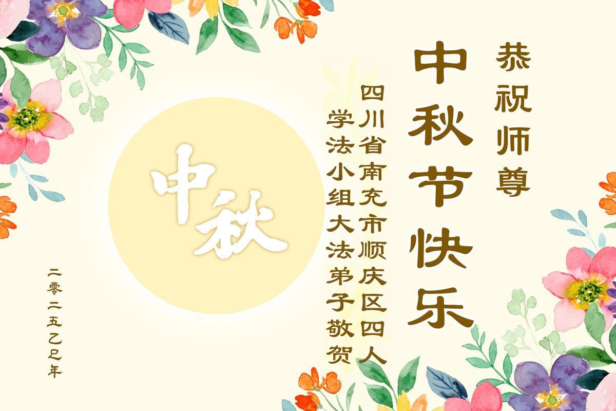 四川南充市一學法小組大法弟子恭祝師尊中秋節快樂!