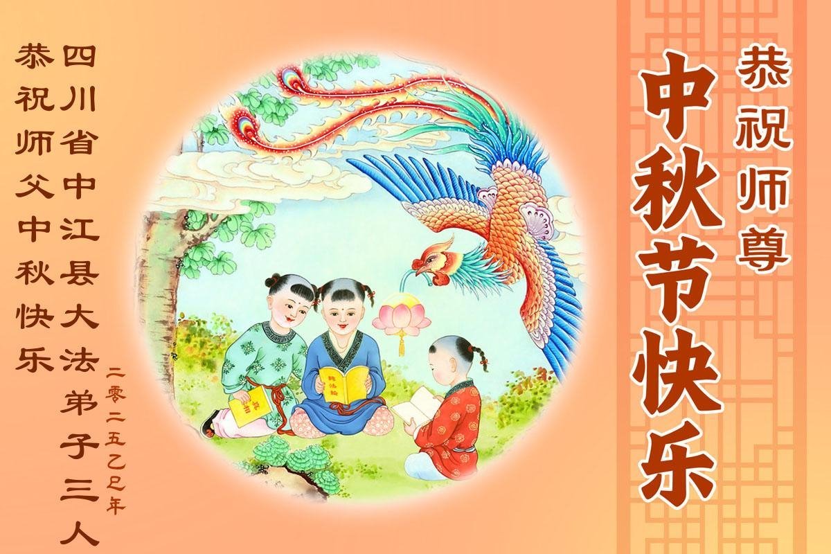 四川省德陽市中江縣三人學法小組大法弟子恭祝師父中秋快樂!