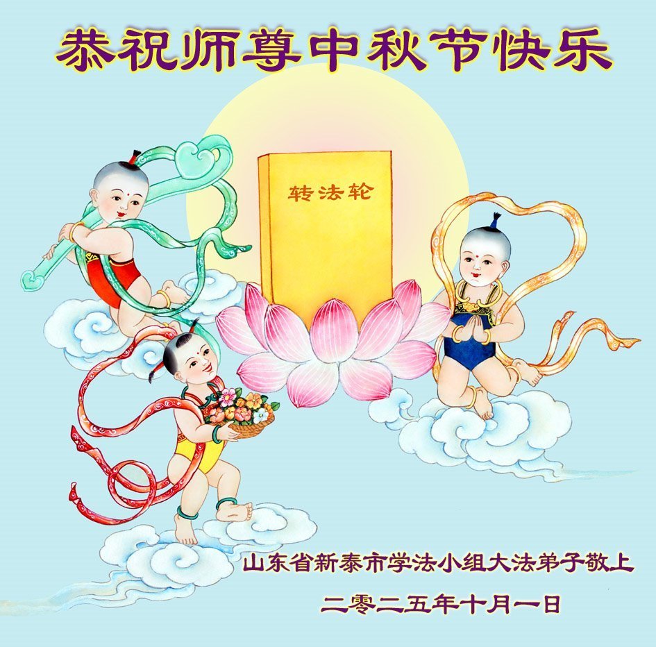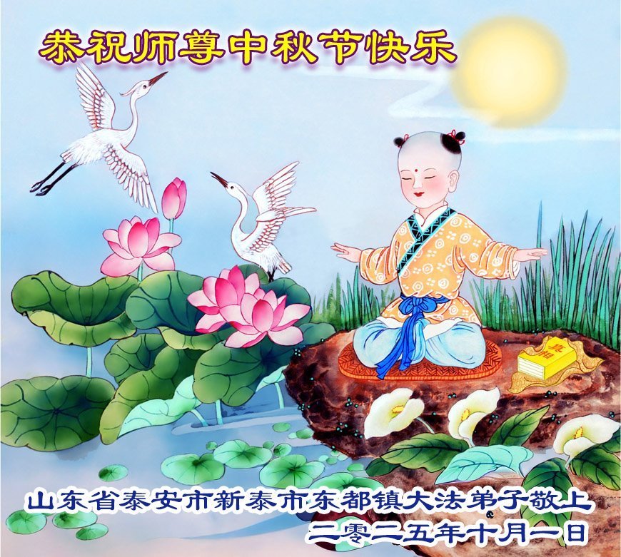 山東省棗莊市一大法弟子恭祝慈悲偉大的師父中秋節快樂!