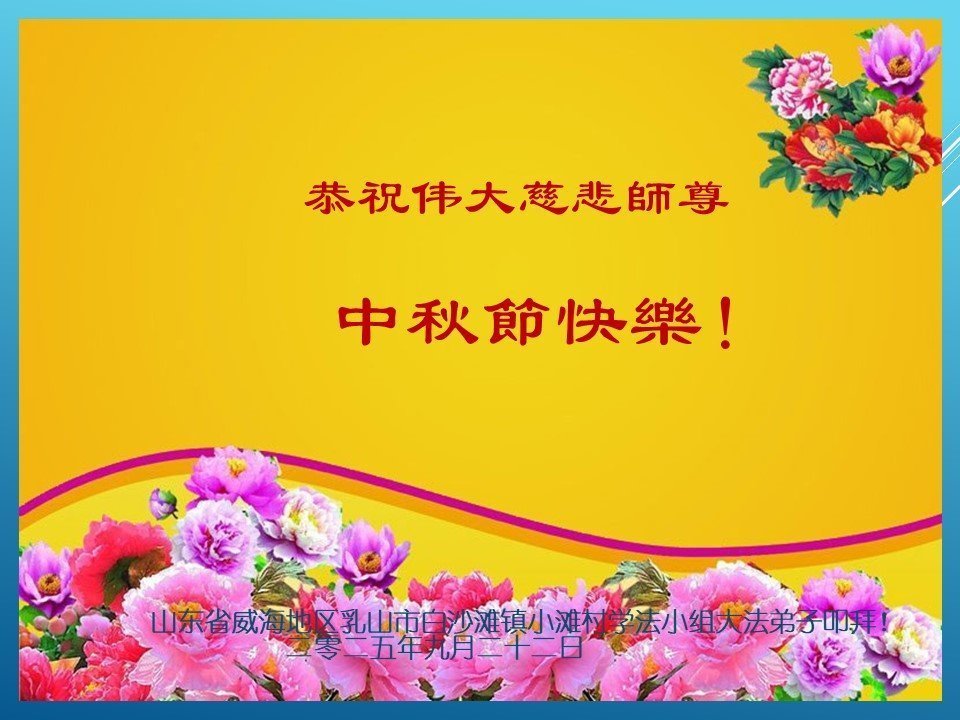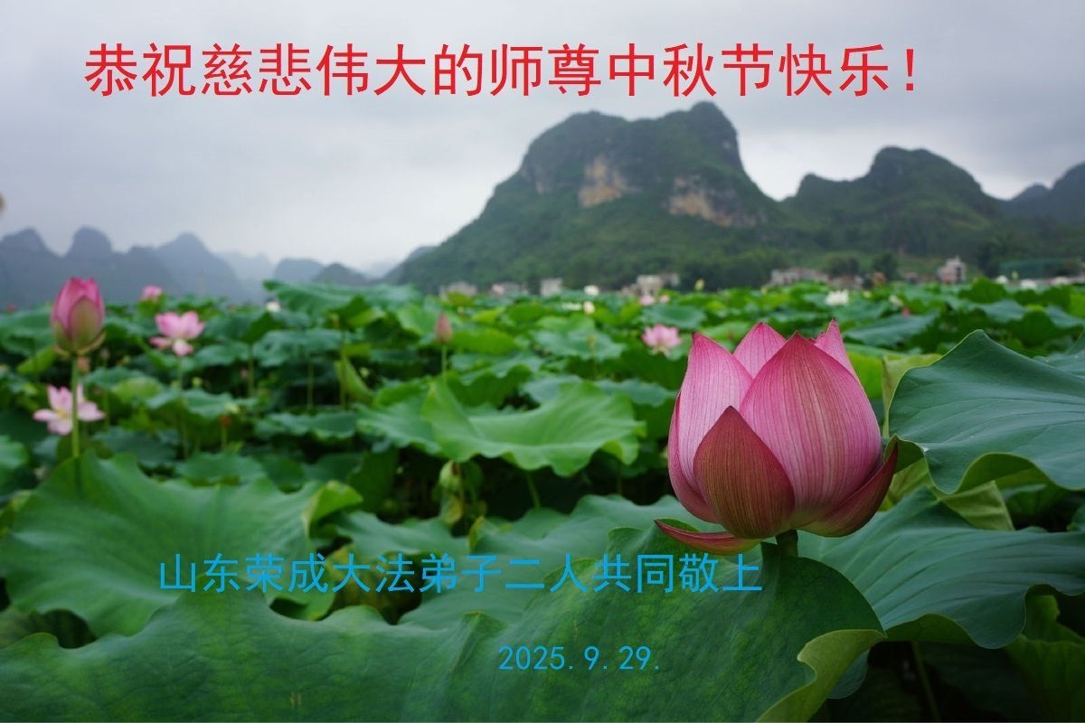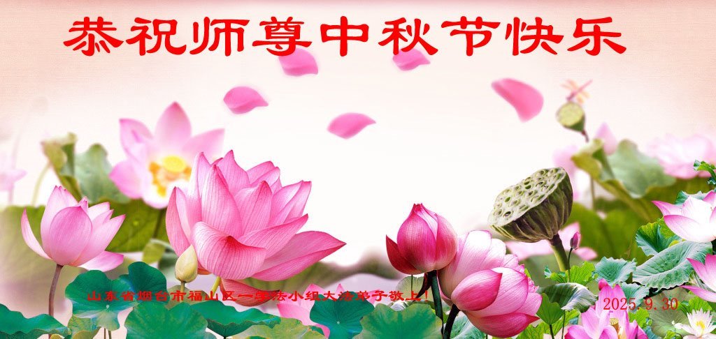 時間越來越快了,師尊一再延續時間,讓更多的大法弟子修好,讓更多的世人明白真相而得救。在師尊的巨大付出與承受下,又迎來了二零二五年的中秋佳節,我們學法小組的幾位大法弟子,虔誠的向師尊問候!師父您好、您辛苦了!