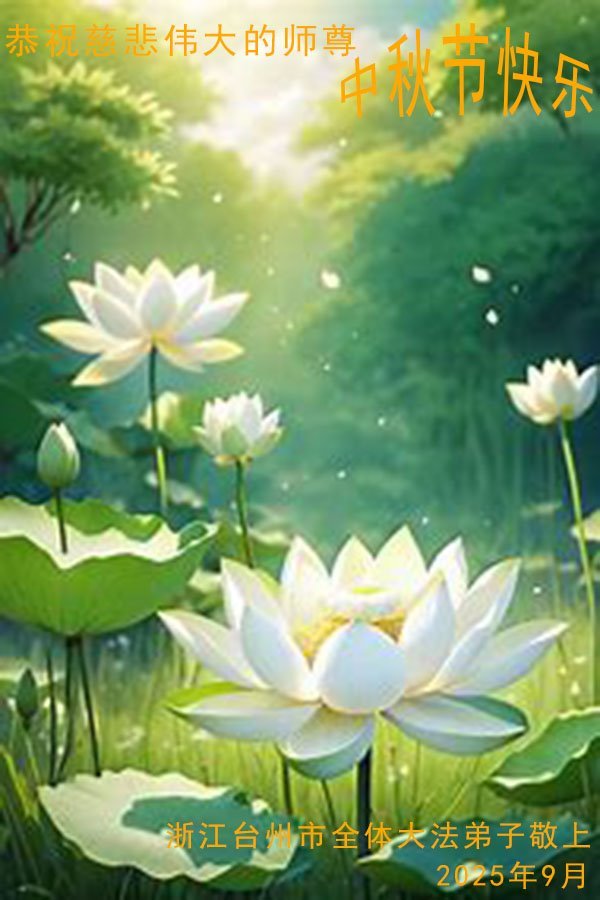 在這萬家團圓的中秋佳節來臨之際,弟子虔誠的叩拜師尊!感恩師尊的慈悲救度!弟子一定精進如初,堅定的修好自己,不斷的同化大法,緊跟師尊圓滿回家!