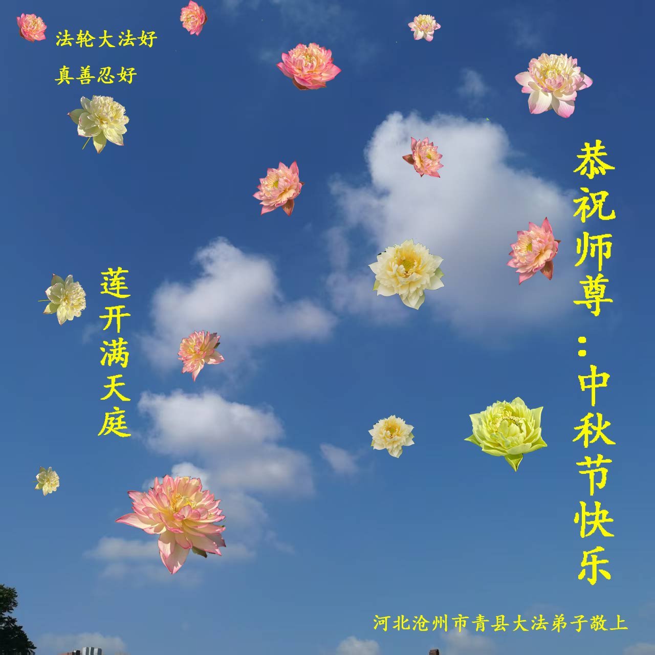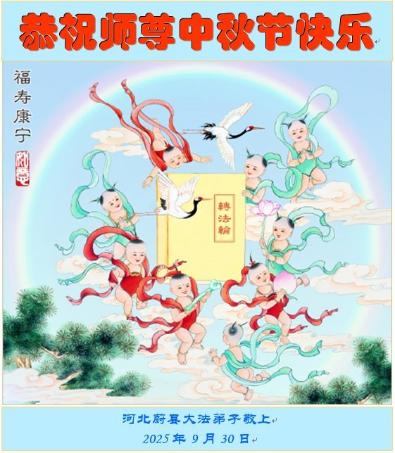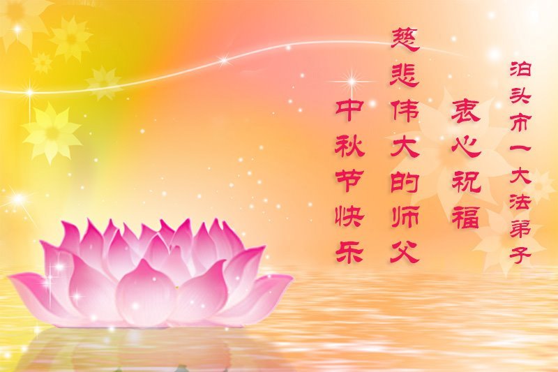 恭祝慈悲偉大的師尊中秋節快樂!謝謝師尊的苦心安排,我們一定修好自己,做好三件事,做一個真正合格的大法弟子!
