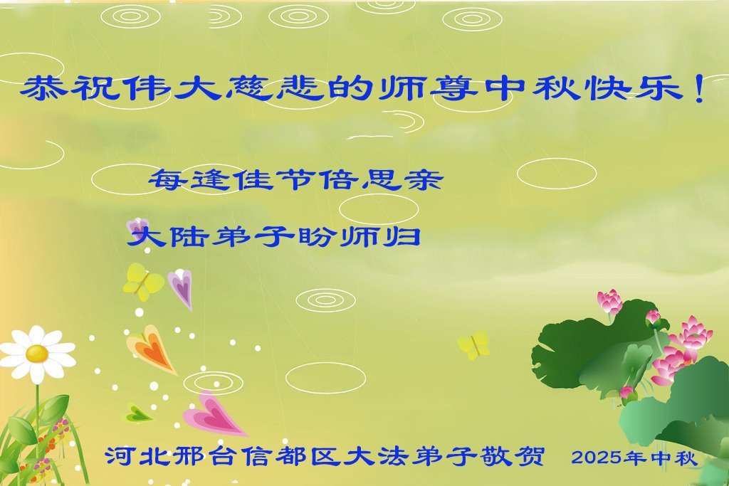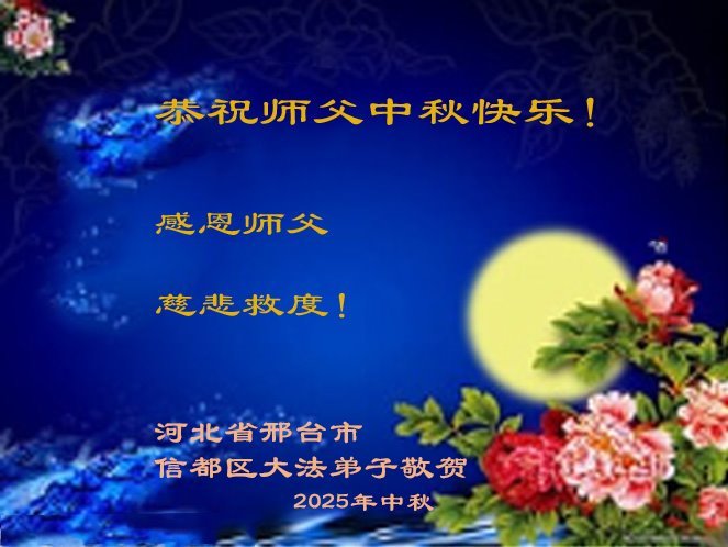 師父您好!時間過得太快太快,轉瞬間二零二五年的中秋節又即將到來。這一年不同尋常,無論從哪一方面講,都發生了許許多多的事情。我們會在這些事中,更加成熟與穩健,會走好、走正您為我們安排的路!我們知道,正法的進程真的已接近尾聲了,我們會在不多的時間裏,努力做好三件事,讓師父放心!我們向師父交上一份滿意的答卷!
