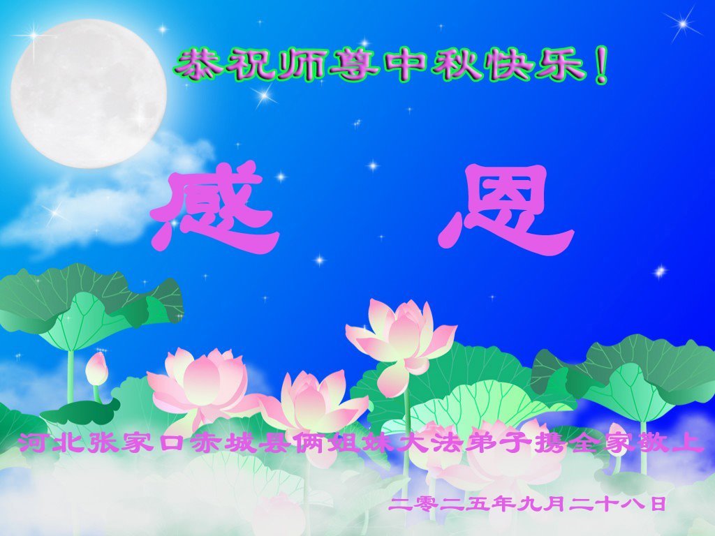 張家口蔚縣城姐弟大法弟子恭祝師尊中秋佳節快樂!