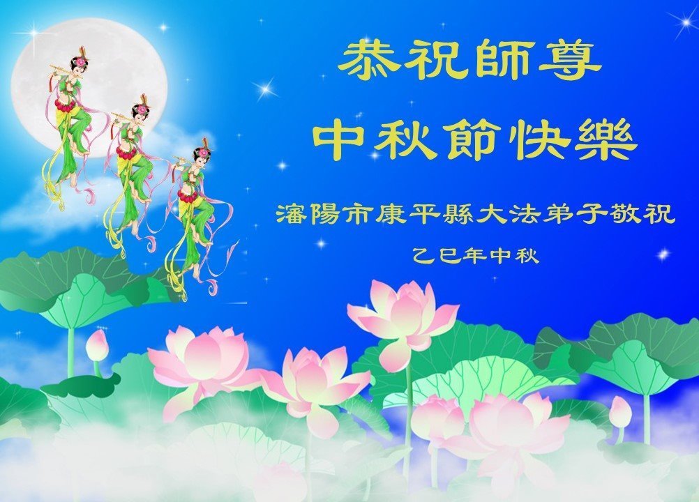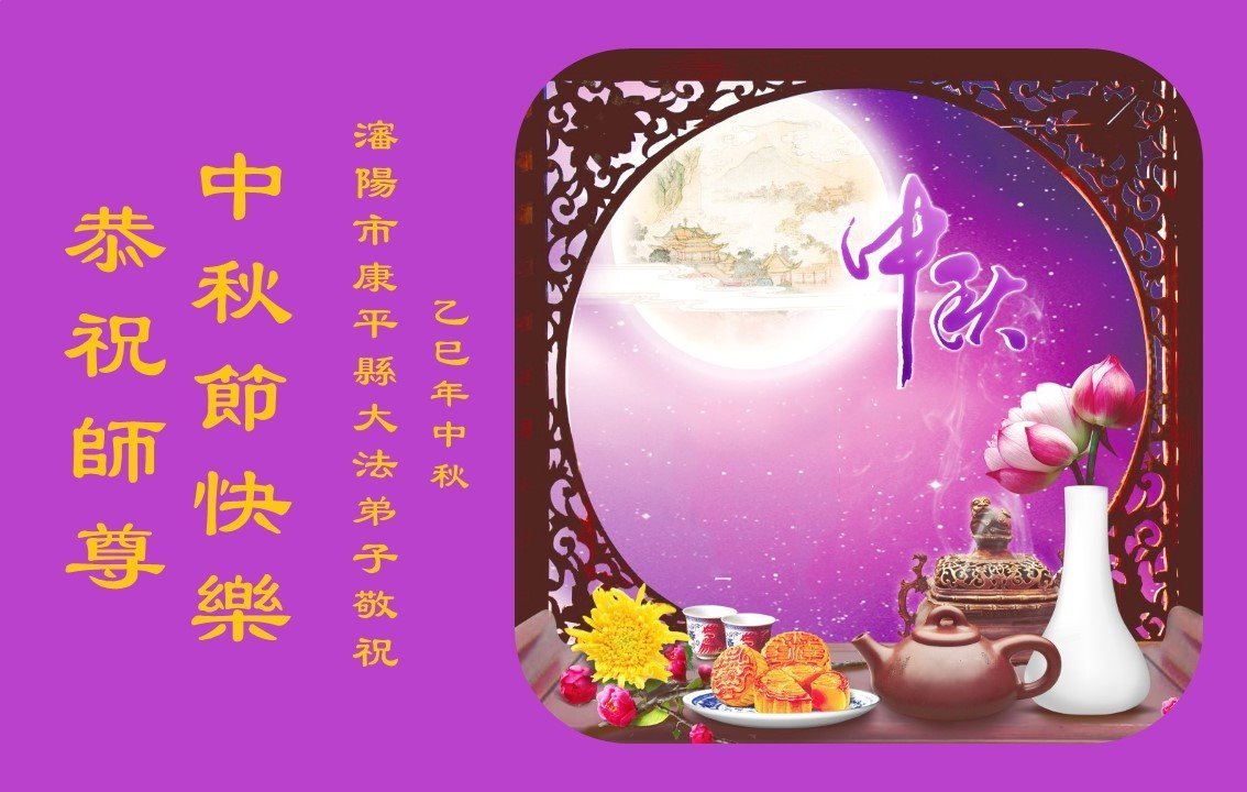 遼寧省瀋陽市一五人學法小組大法弟子恭祝師尊中秋快樂!