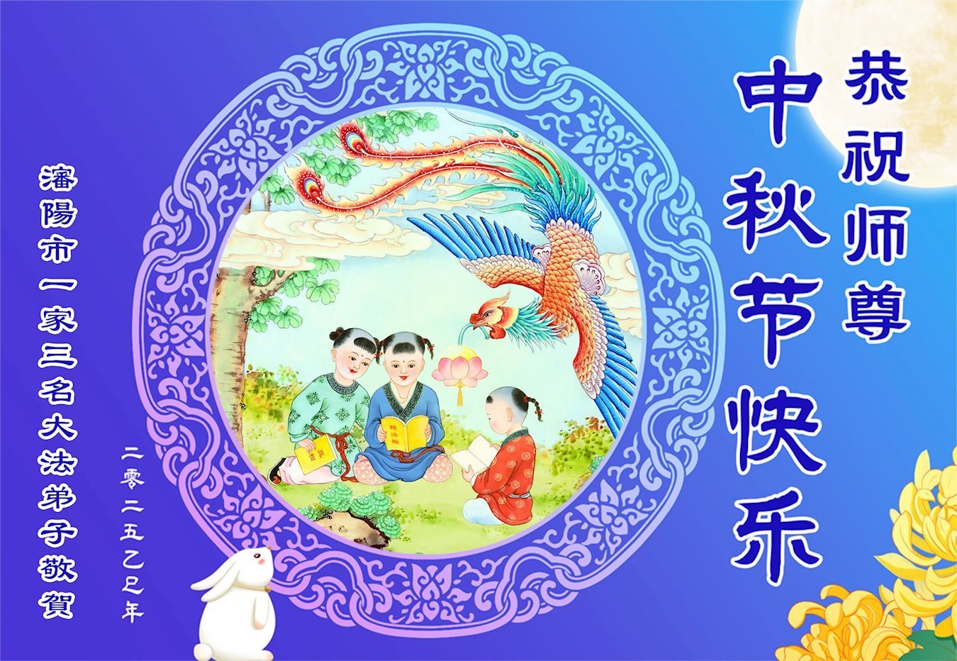 遼寧省瀋陽市一家三名大法弟子恭祝師尊中秋快樂!