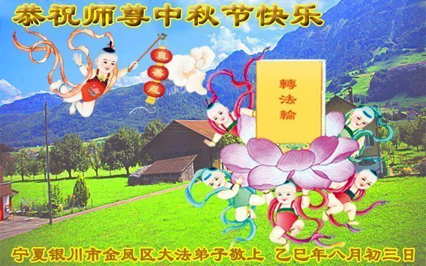 甘肅省慶陽市一家大法弟子恭祝慈悲偉大的師尊中秋節快樂!
