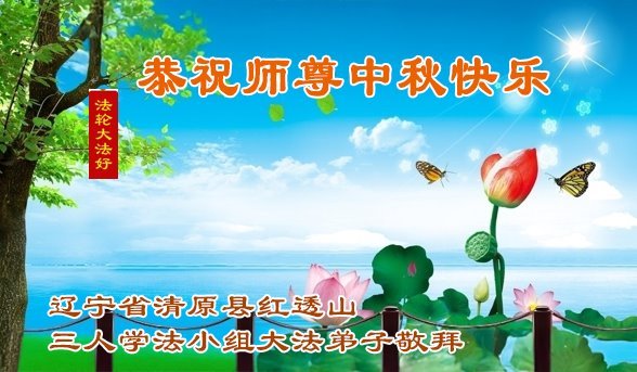 遼寧省撫順市清原縣紅透山大法弟子三人學法小組大法弟子恭祝師尊中秋節快樂!