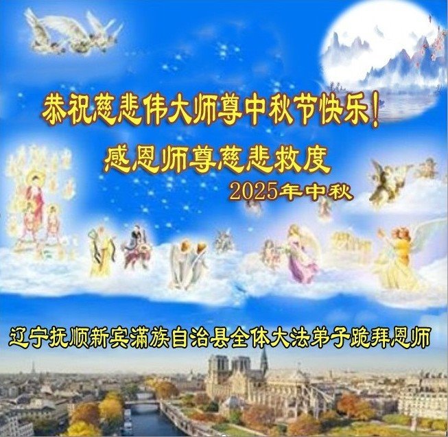 遼寧撫順大法弟子恭祝慈悲偉大師尊中秋節快樂!
