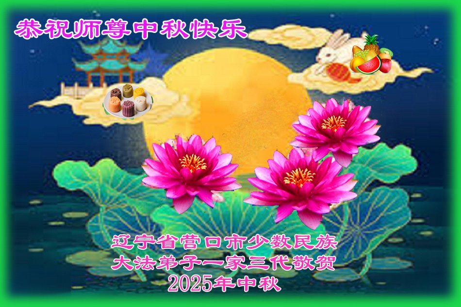 遼寧省營口市少數民族大法弟子一家三代恭祝師尊中秋節快樂!