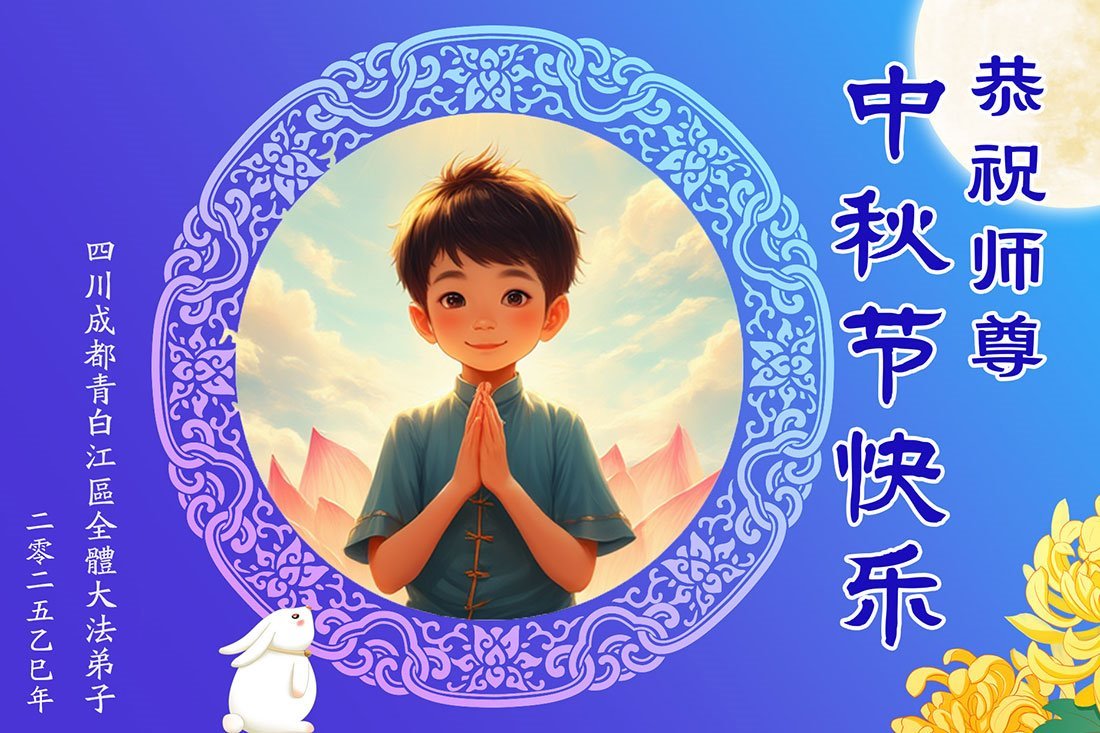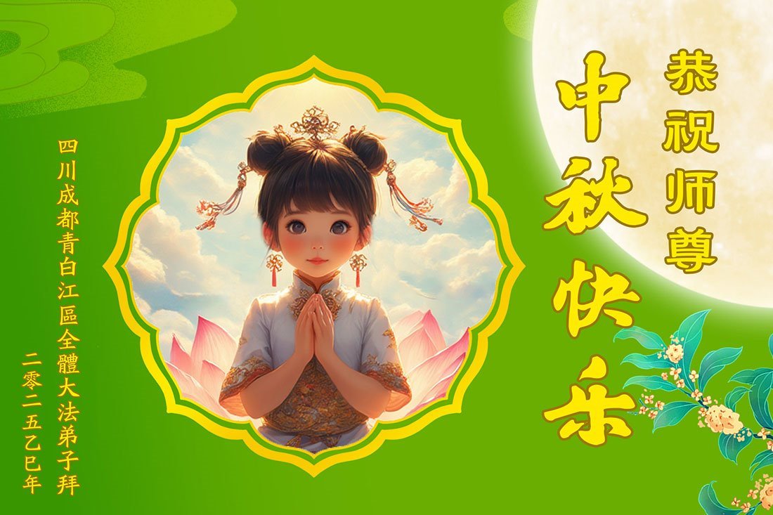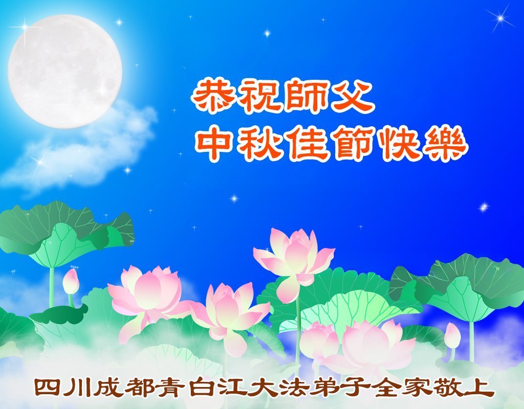 師父啊!是您那洪大的慈悲救度了弟子!弟子們感恩不盡!在這中秋佳節來臨之際,弟子們向慈悲偉大的師父致以最崇高的敬意!弟子會學好法,修好自己,救度更多的眾生,完成好史前大願,跟師父回到真正的家園。
