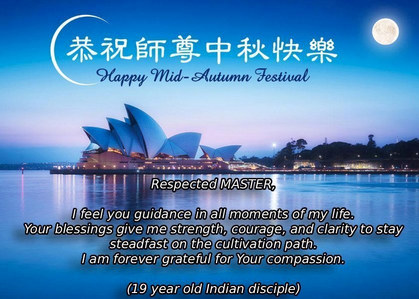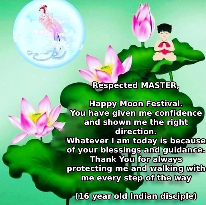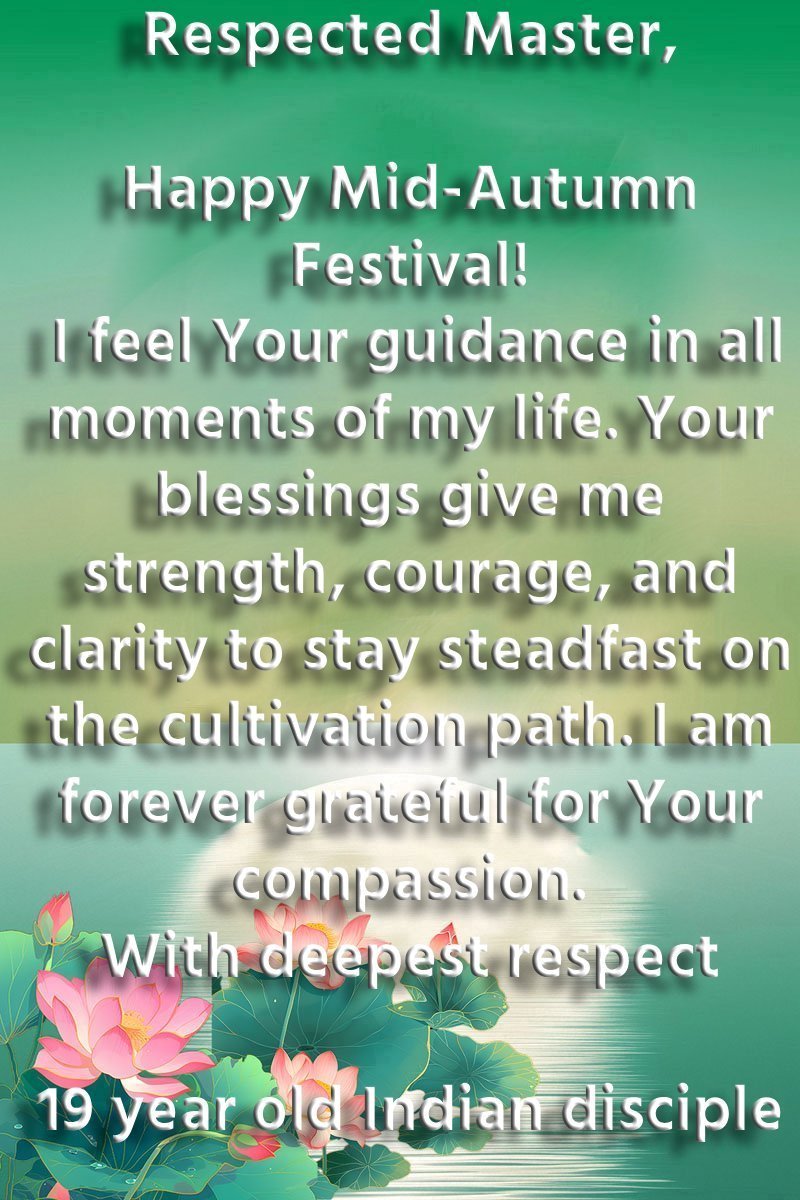 Happy Mid-Autumn Festival.I always feel that You are holding my hand and guiding me with every step I take. With Your protection and blessings, I wish to stay diligent, pure, and true on this cultivation path.";