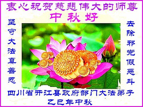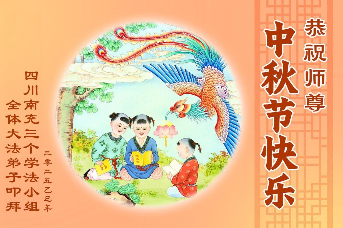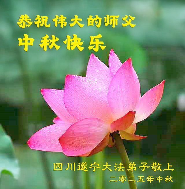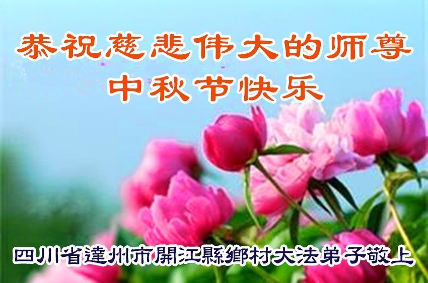 在中秋佳節將到來之際,我們遂寧全體大法弟子衷心感謝師父!您歷盡千辛萬苦洪傳大法救度眾生,為眾生承受付出了一切。為大法弟子們淨化身體,淨化心靈,點化、加持、保護、成就大法弟子們。師父您辛苦了!弟子們唯有盡心盡力做好師父您安排的三件事,真修實修自己,履行好助師救人的責任和使命,不負師父您的浩蕩洪恩。